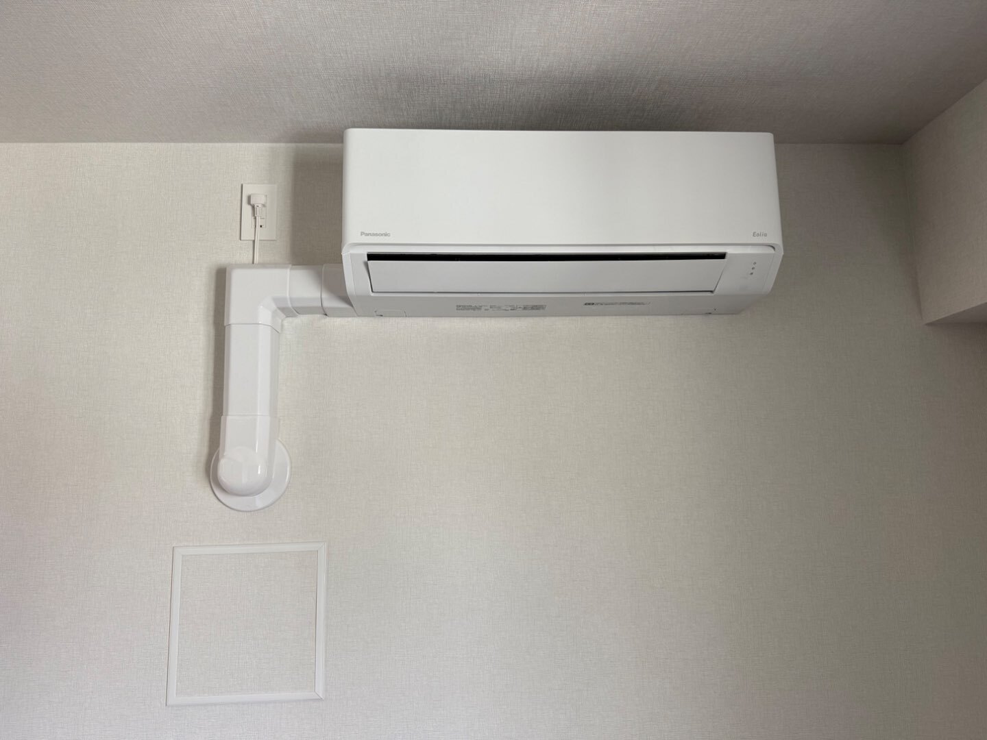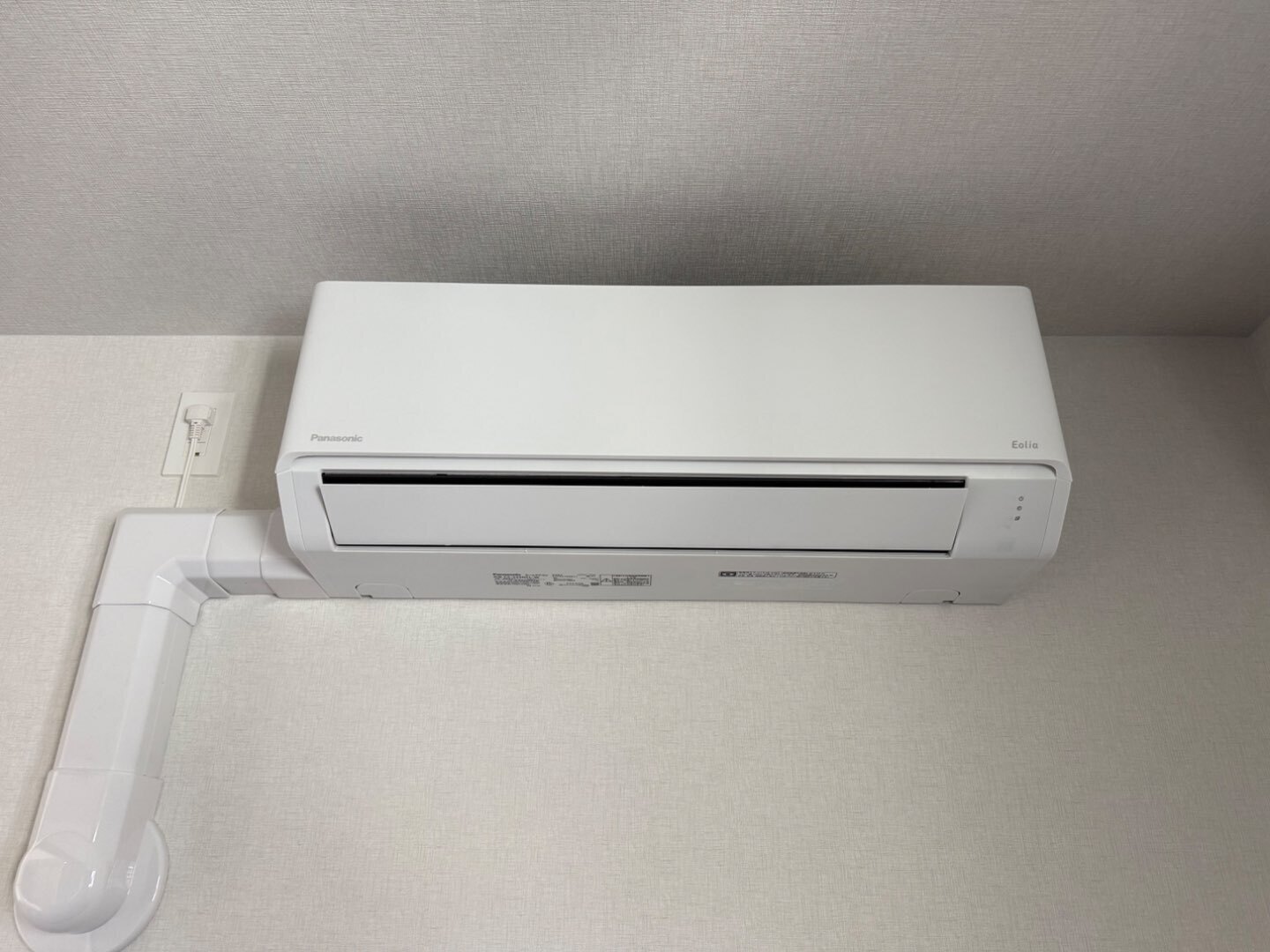新築マンションにて、Panasonic Eolia(CS-225DFL-W)およびDaikinルームエアコンの新規設置工事を行いました。