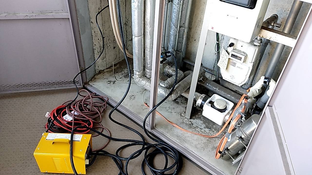宮城県石巻市南中里 大型マンション パイプシャフト給水配管凍結 電気解氷機 解氷作業
