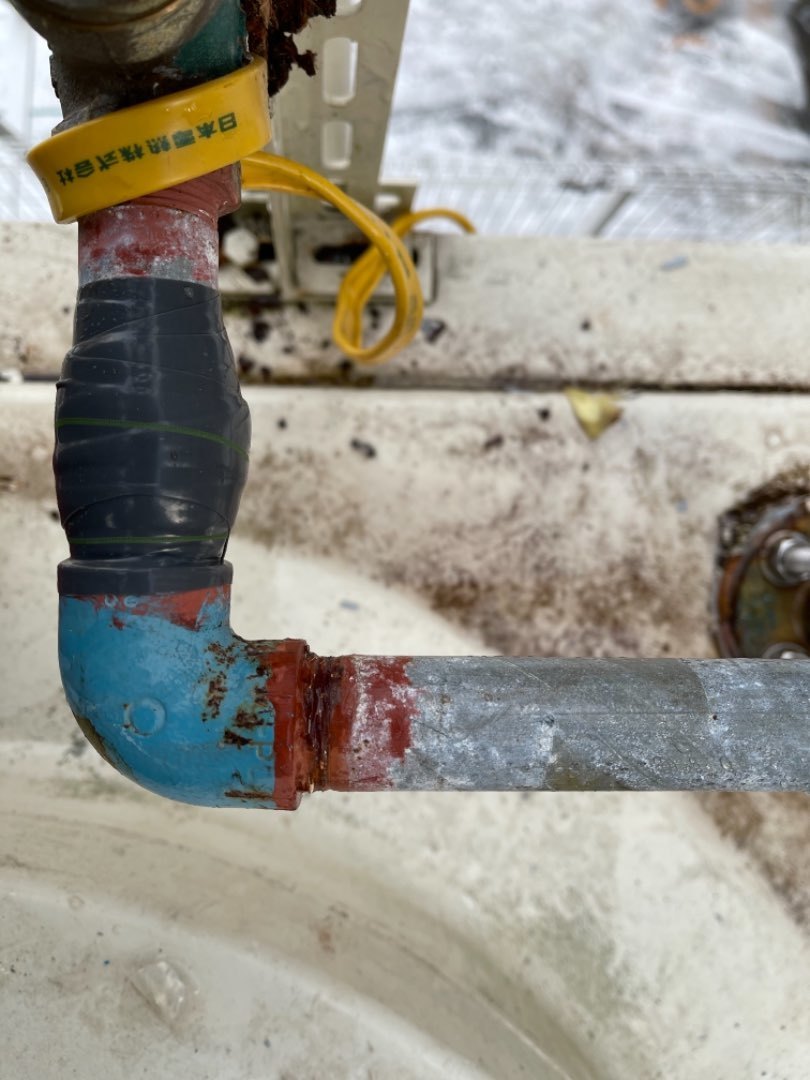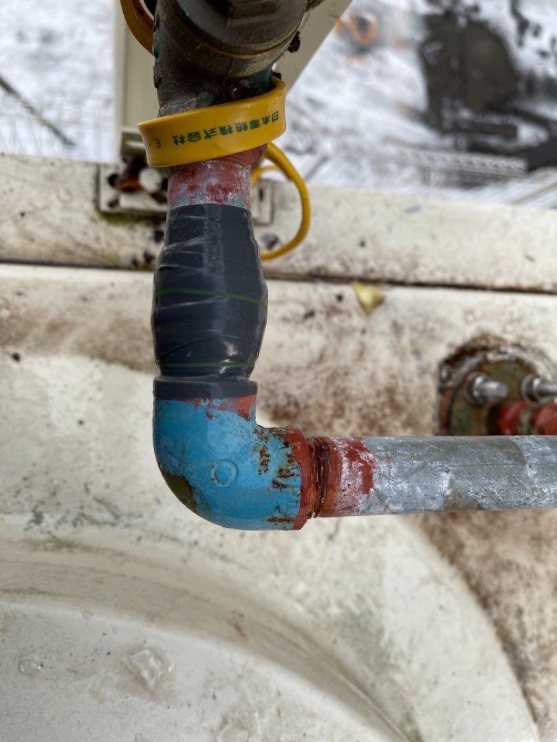 1.マンション受水槽補給給水管、凍結漏水の修繕工事。