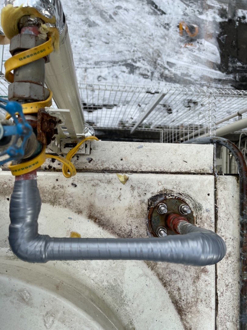 3.凍結防止ヒーター、グラスウール保温復旧工事。