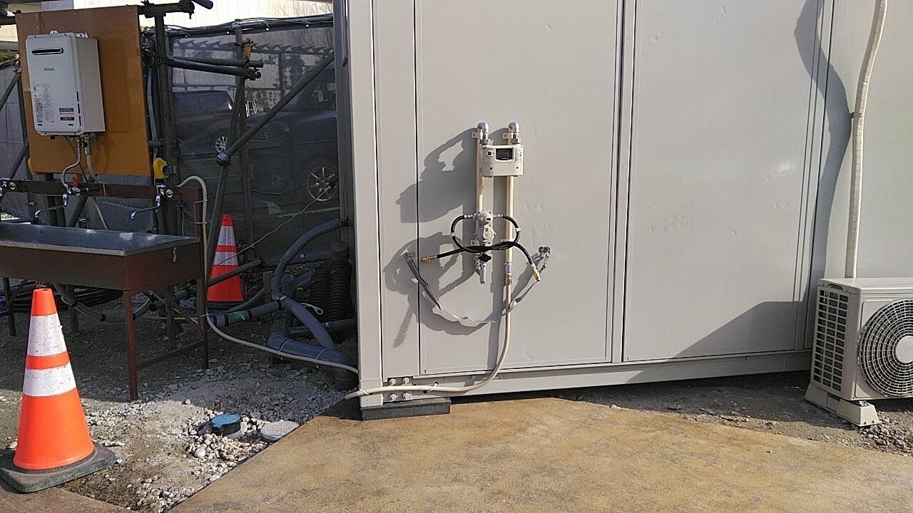 宮城県富谷市成田 建設現場事務所 新規ガス給湯器取付 新規ガス配管工事