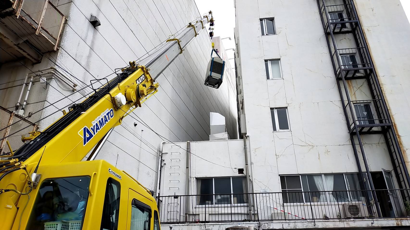 岩手県奥州市 ホテル宿泊施設様 Panasonic ビル用システムマルチエアコン取付に伴う既存室外機撤去工事