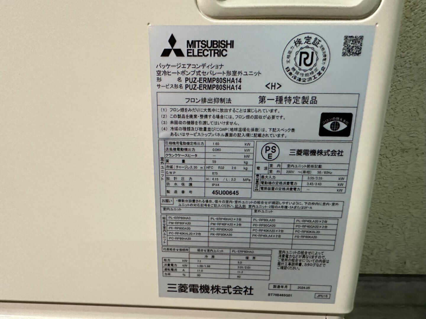 2 室外機 PUZ-ERMP80SHA14 1