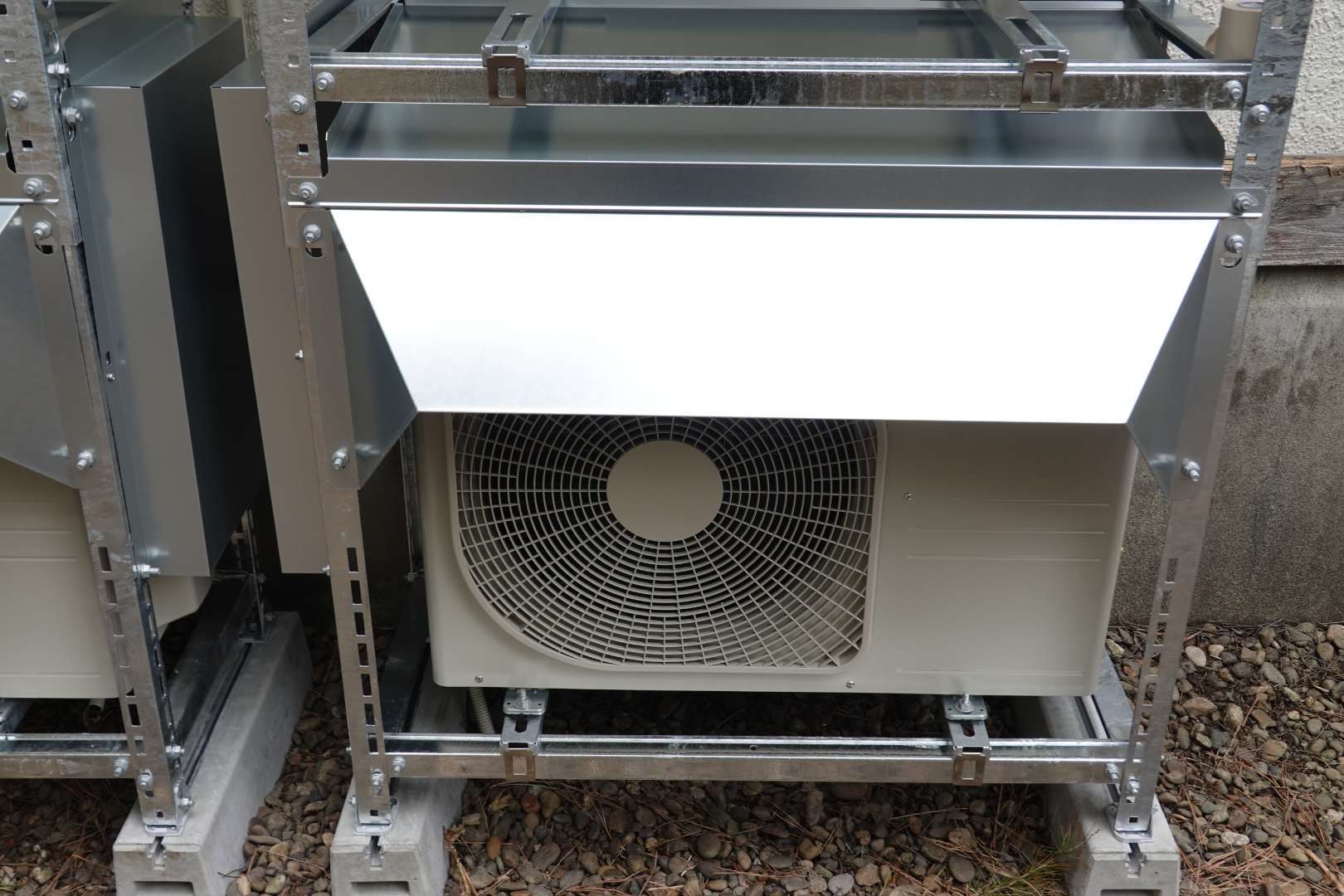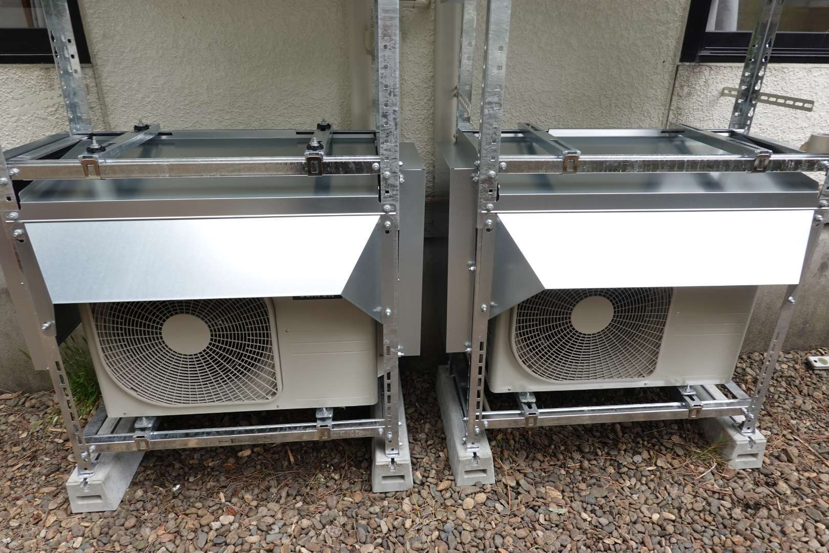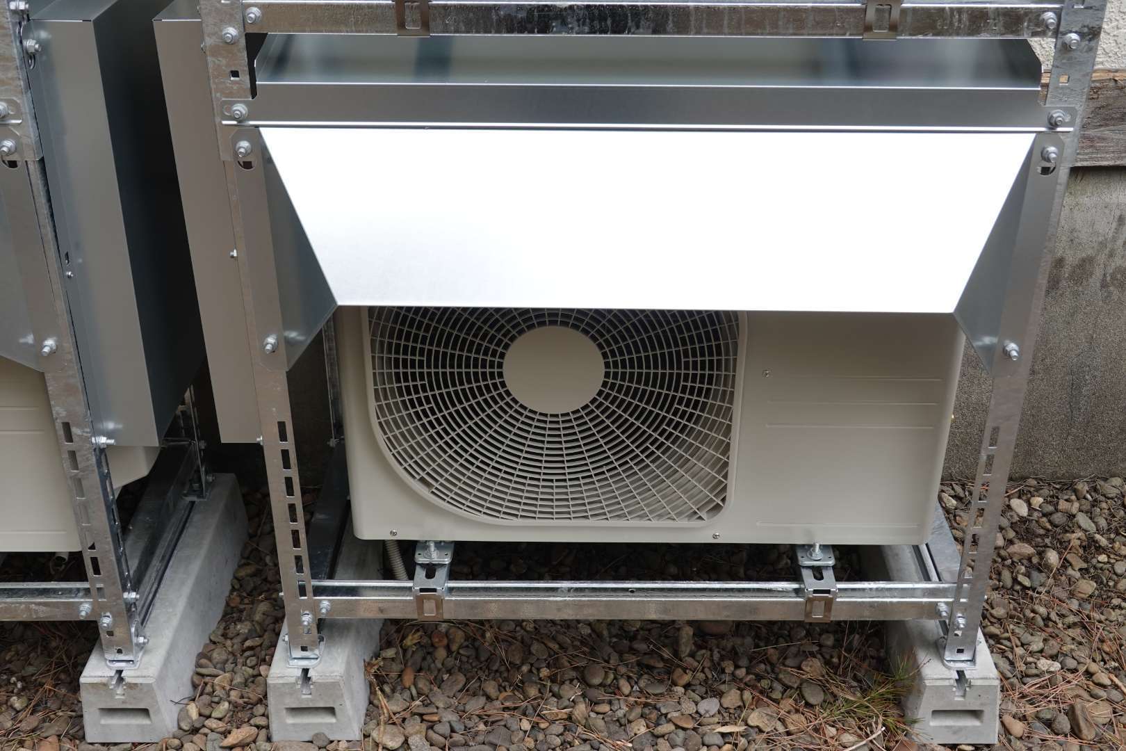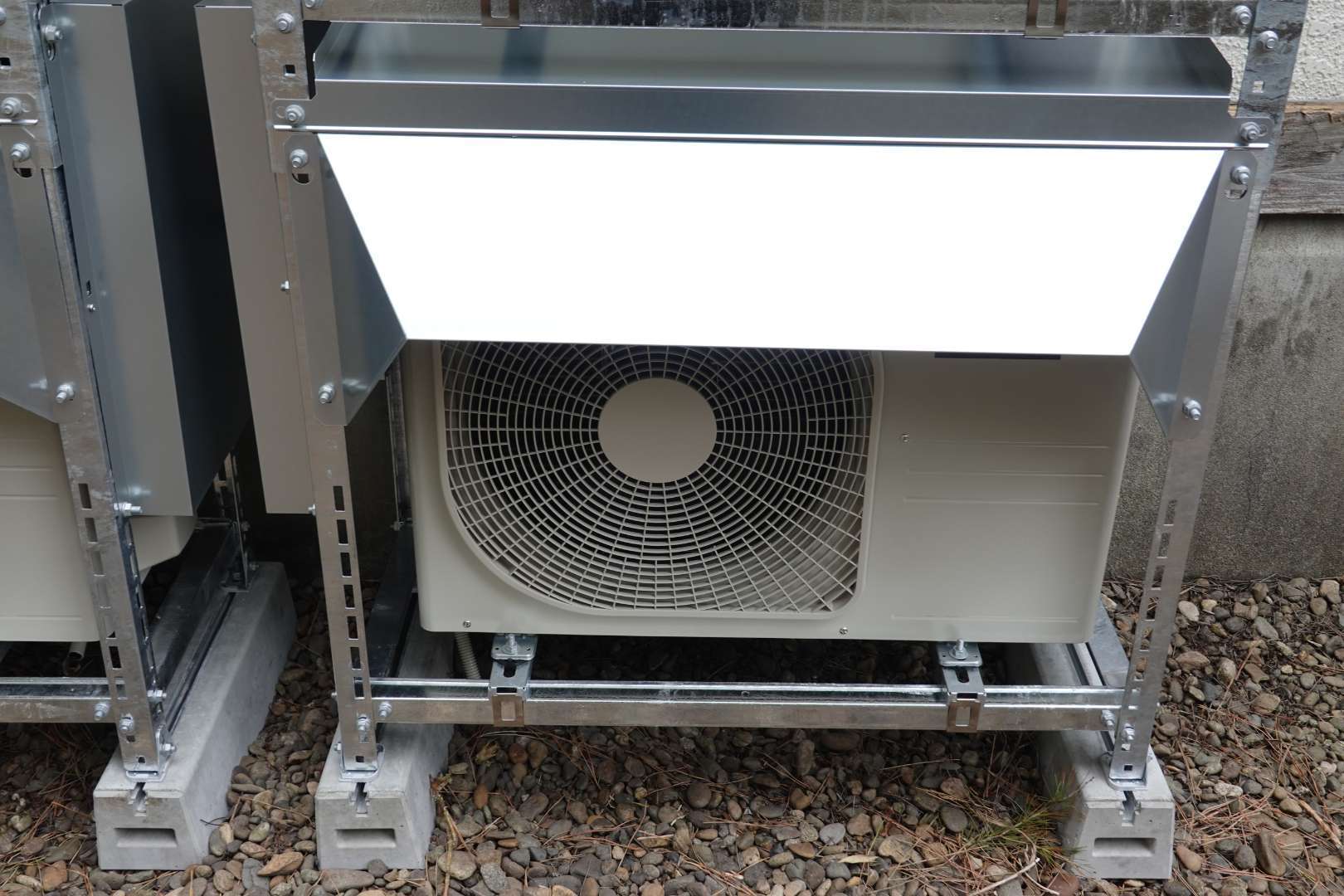 岩手県一関市厳美町 温泉旅館施設 三菱重工業製 ルームエアコン取付工事 防雪架台取付工事 二段架台取付工事