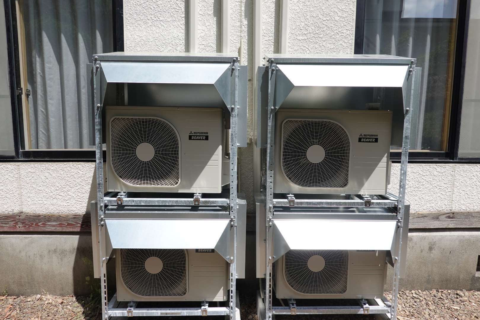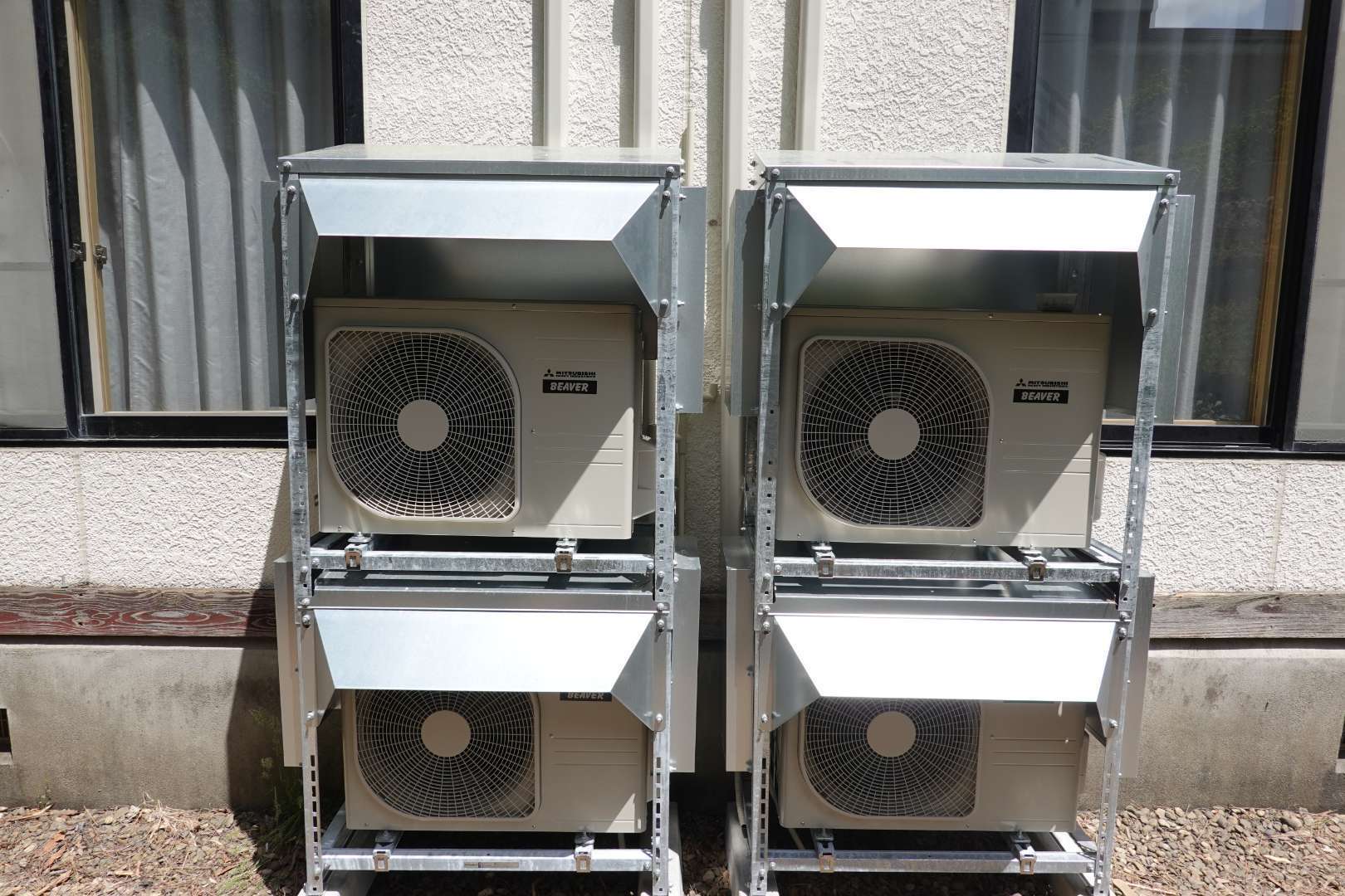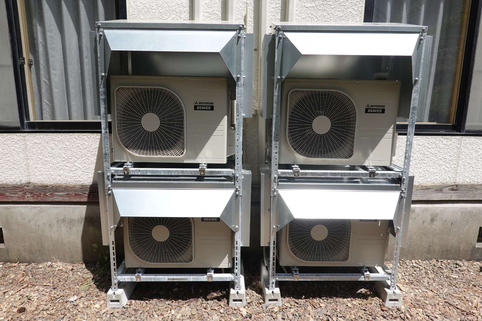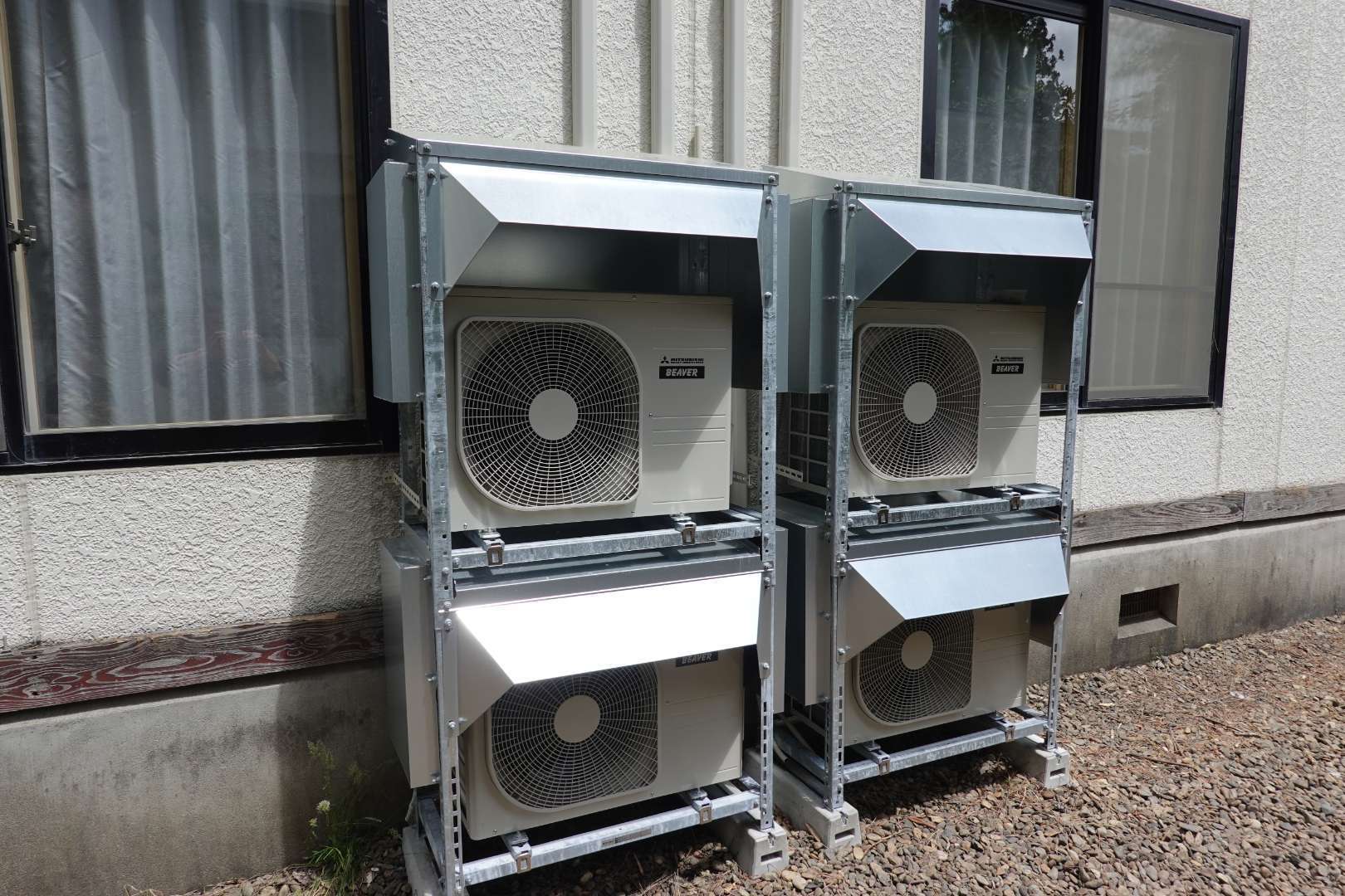岩手県一関市厳美町 温泉旅館施設 三菱重工業製 ルームエアコン取付工事 防雪架台取付工事 二段架台取付工事