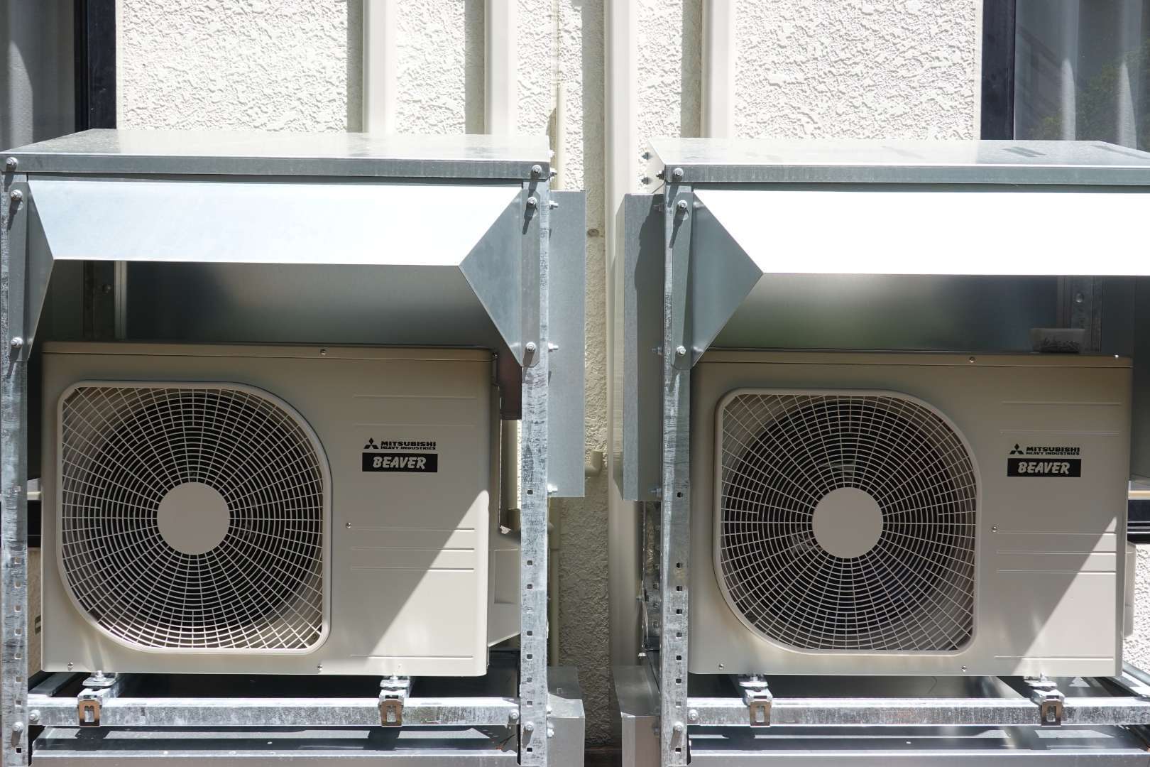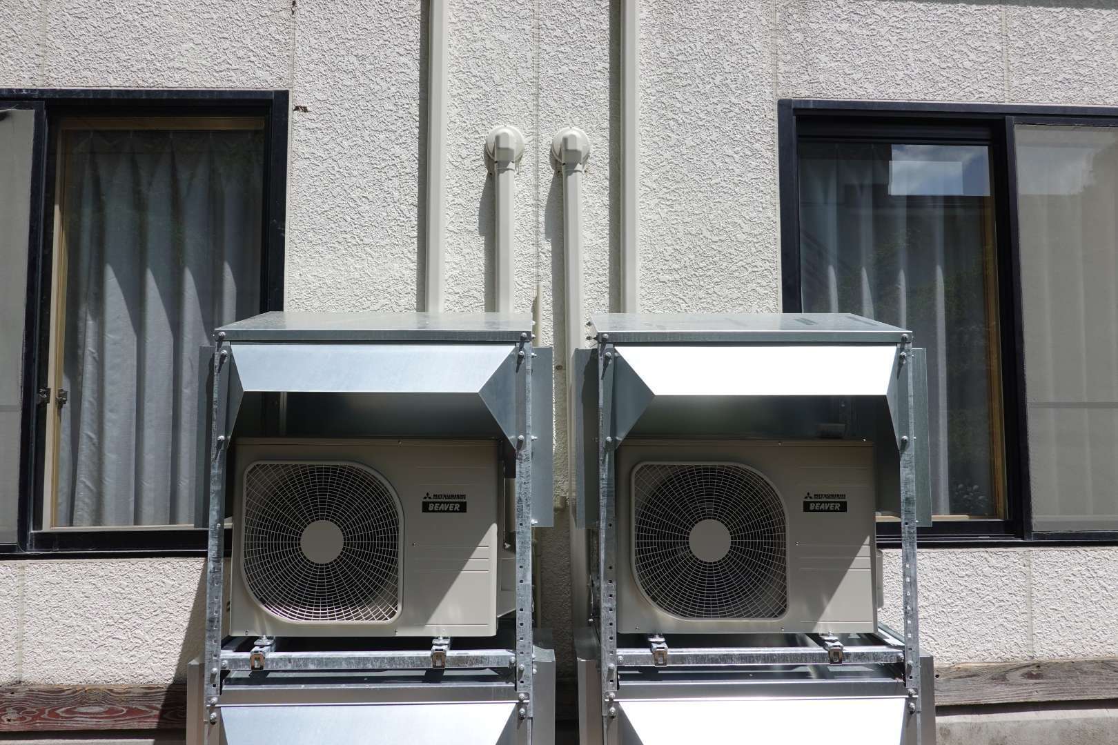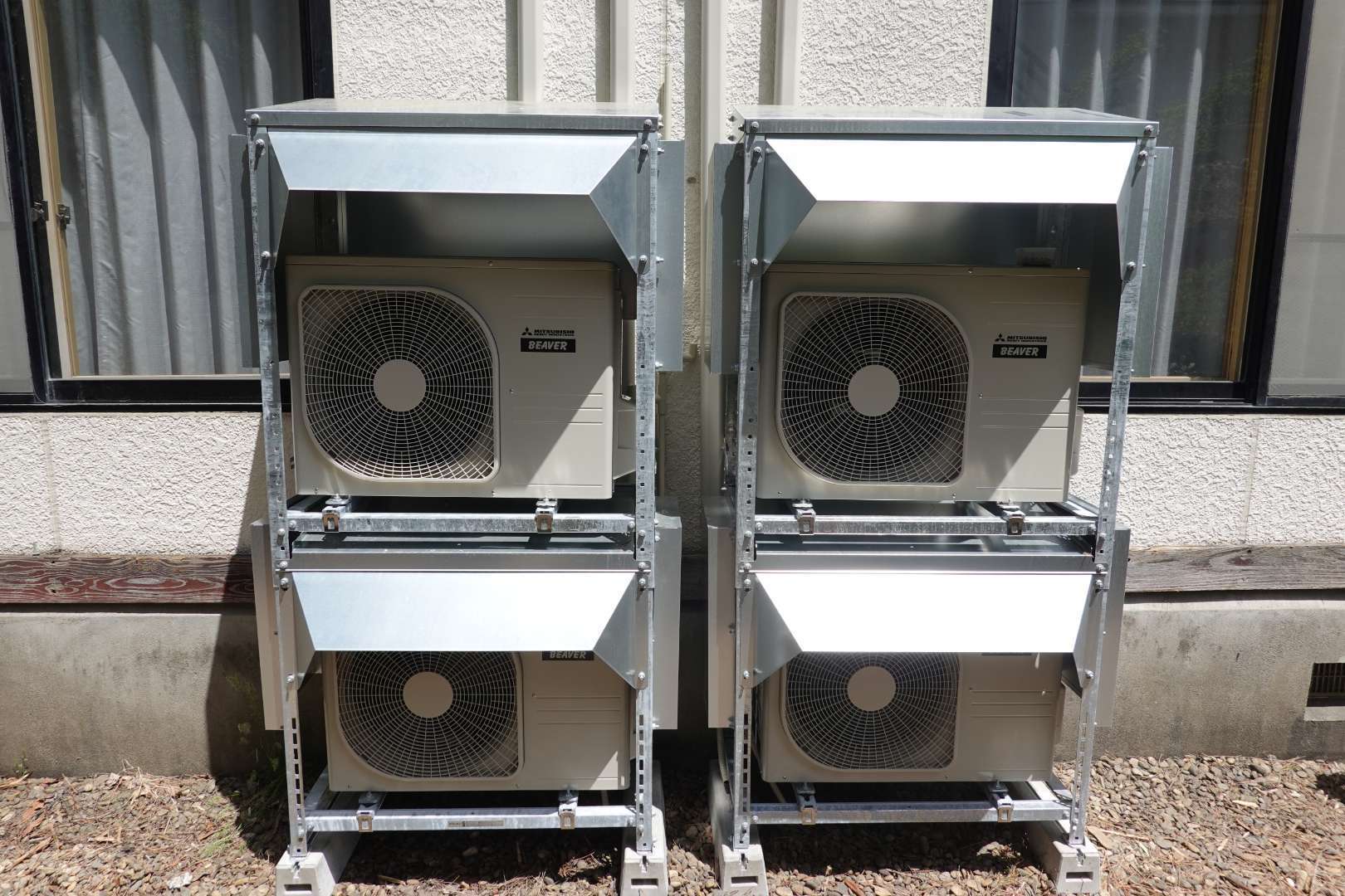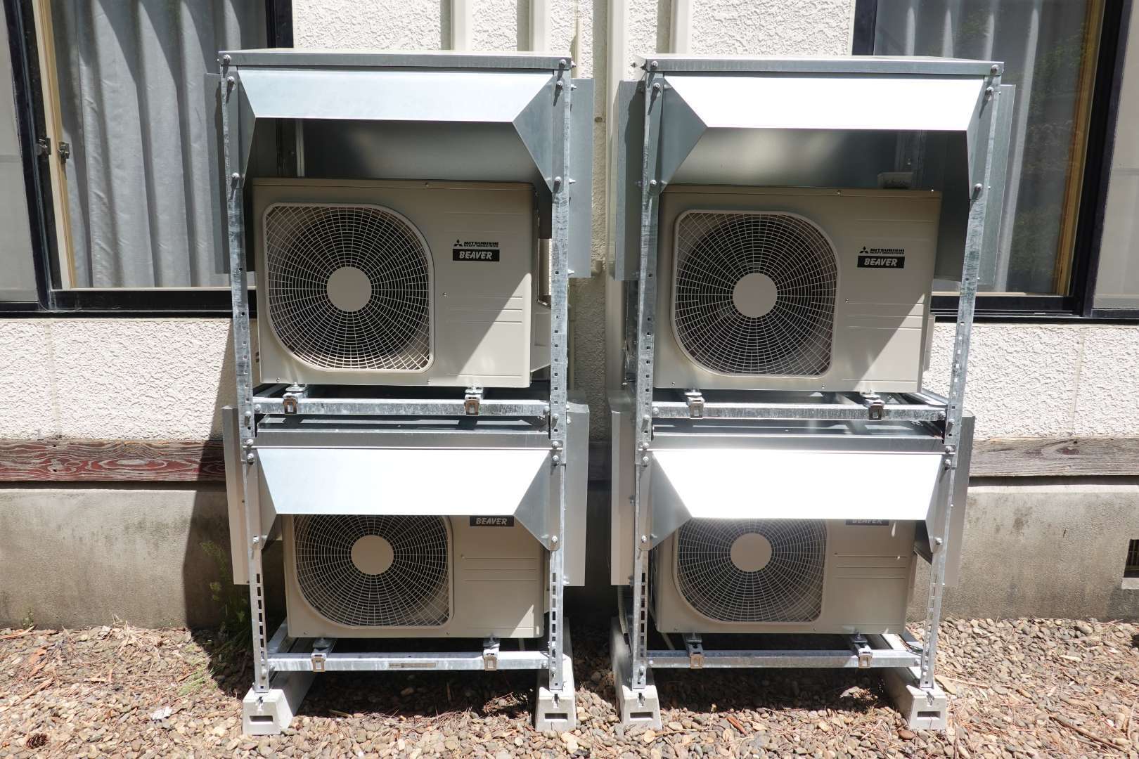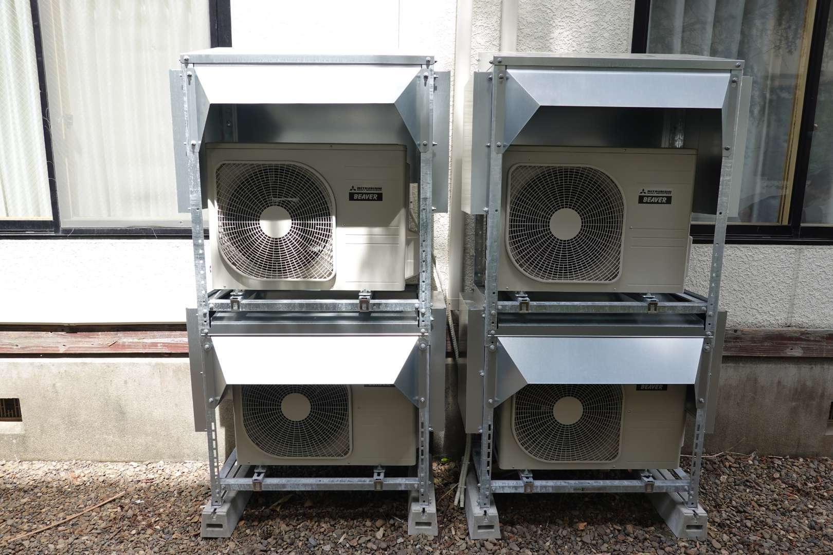 岩手県一関市厳美町 温泉旅館施設 三菱重工業製 ルームエアコン取付工事 防雪架台取付工事 二段架台取付工事