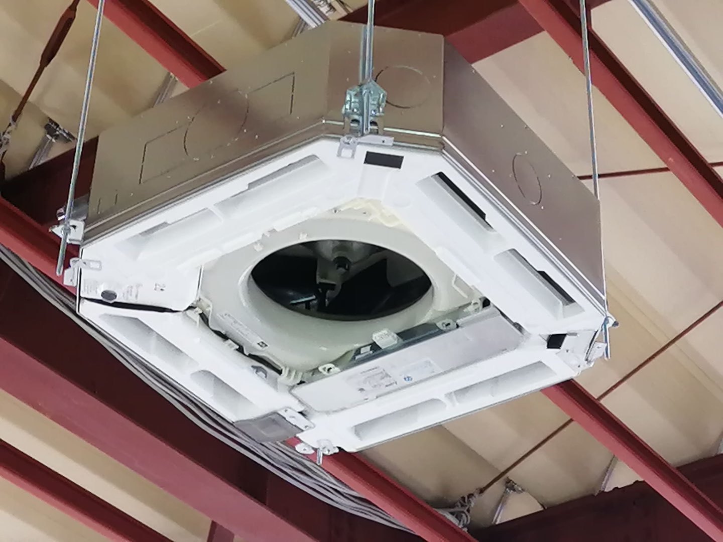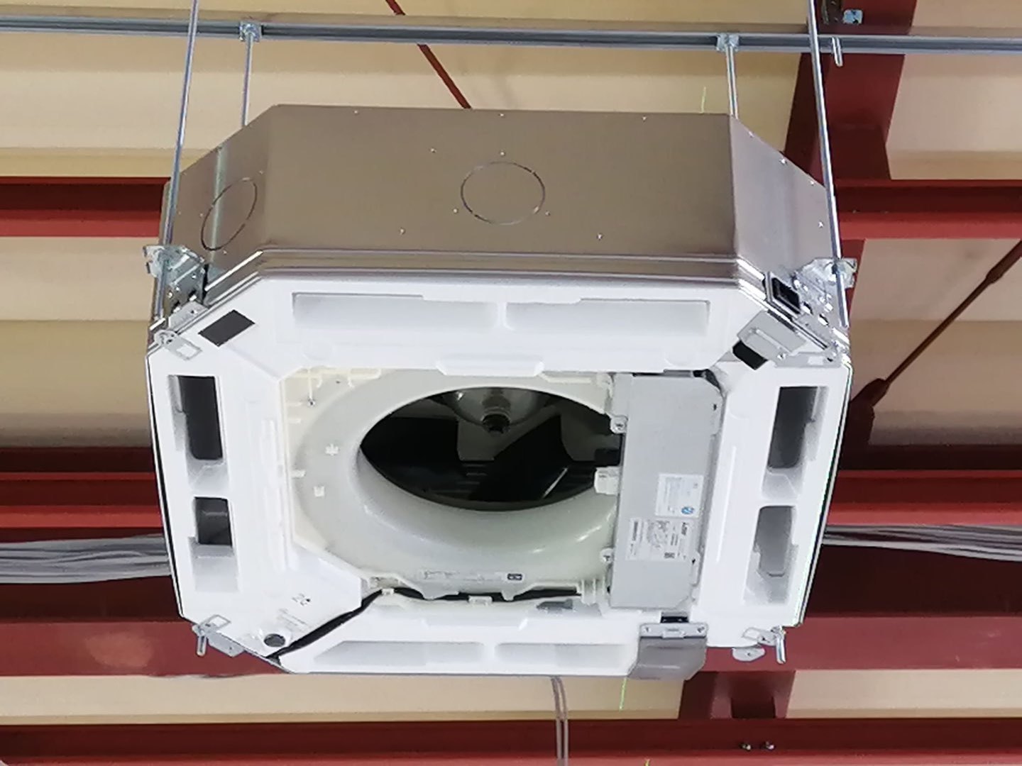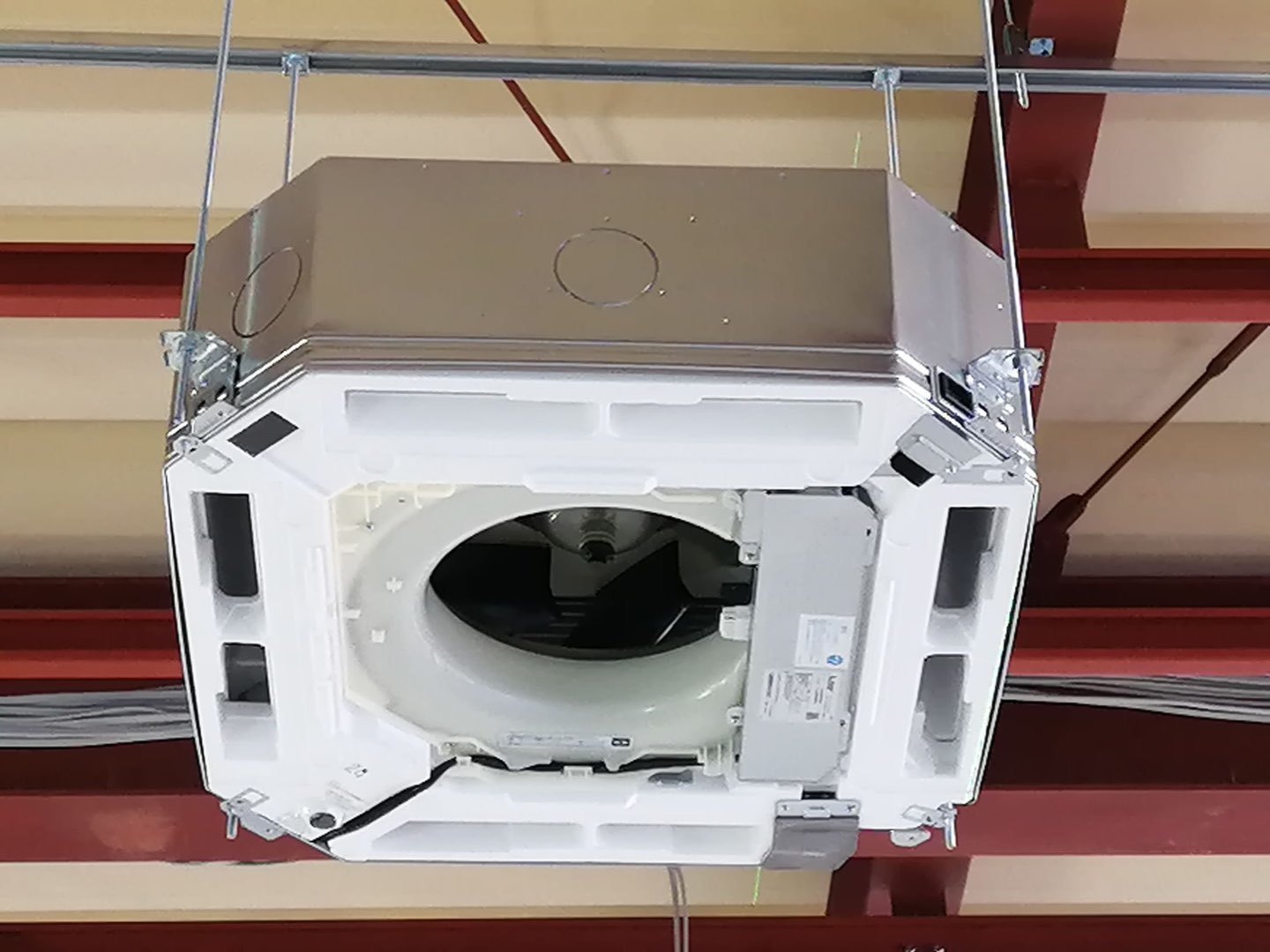 福島県伊達郡国見町 新築大型店舗現場様 三菱電機業務用エアコン 4方向カセット型室内機吊り込み工事