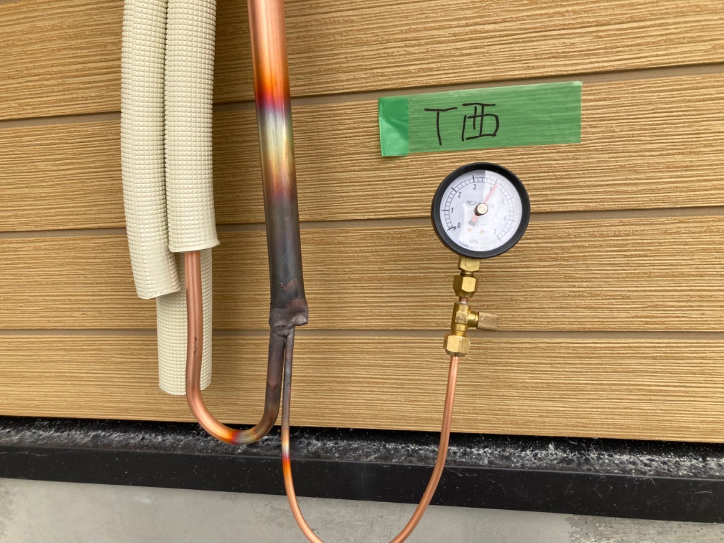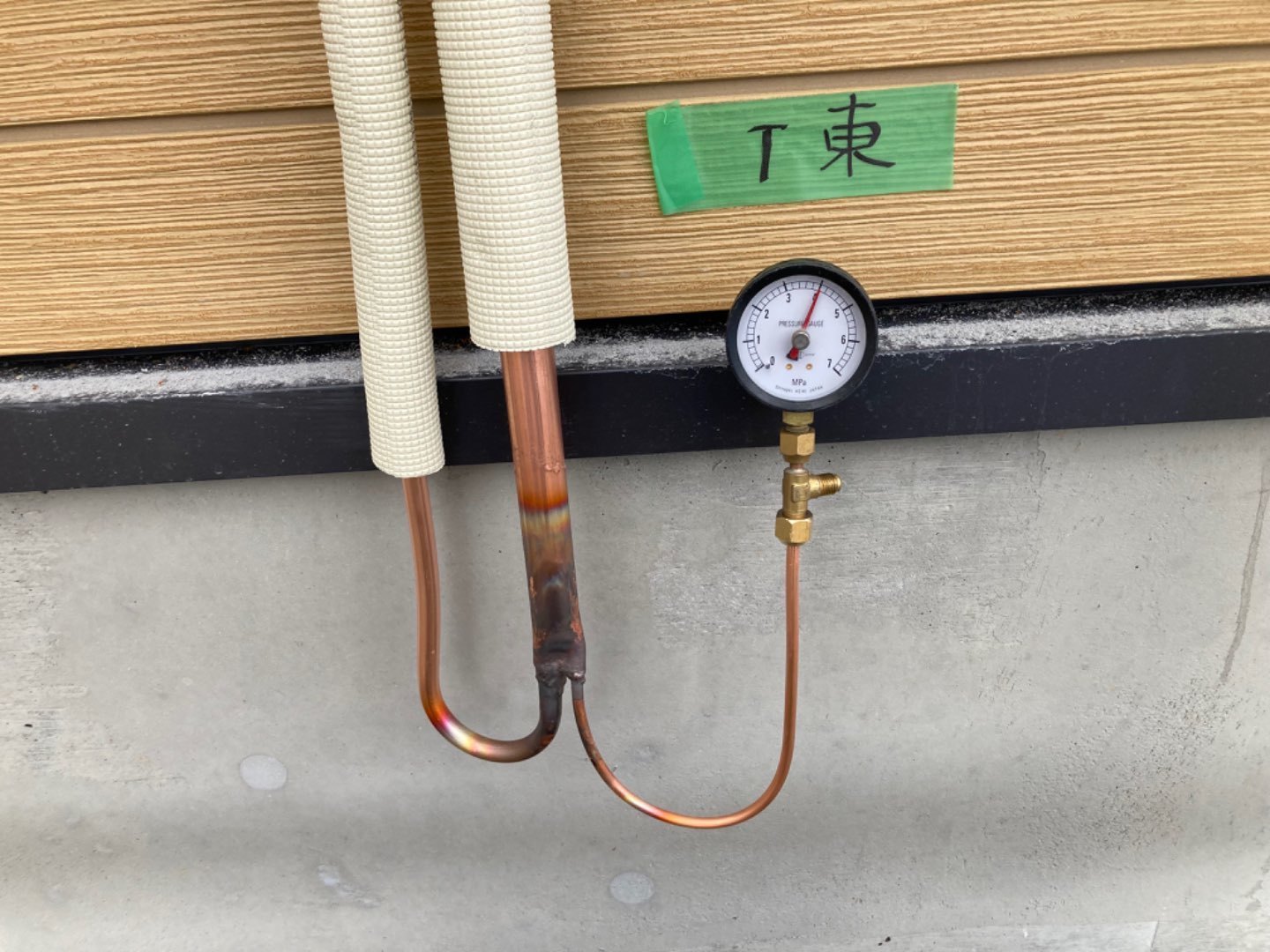 福島県郡山市 新築商業施設様現場 三菱電機業務用エアコン新規設備工事 耐圧試験作業