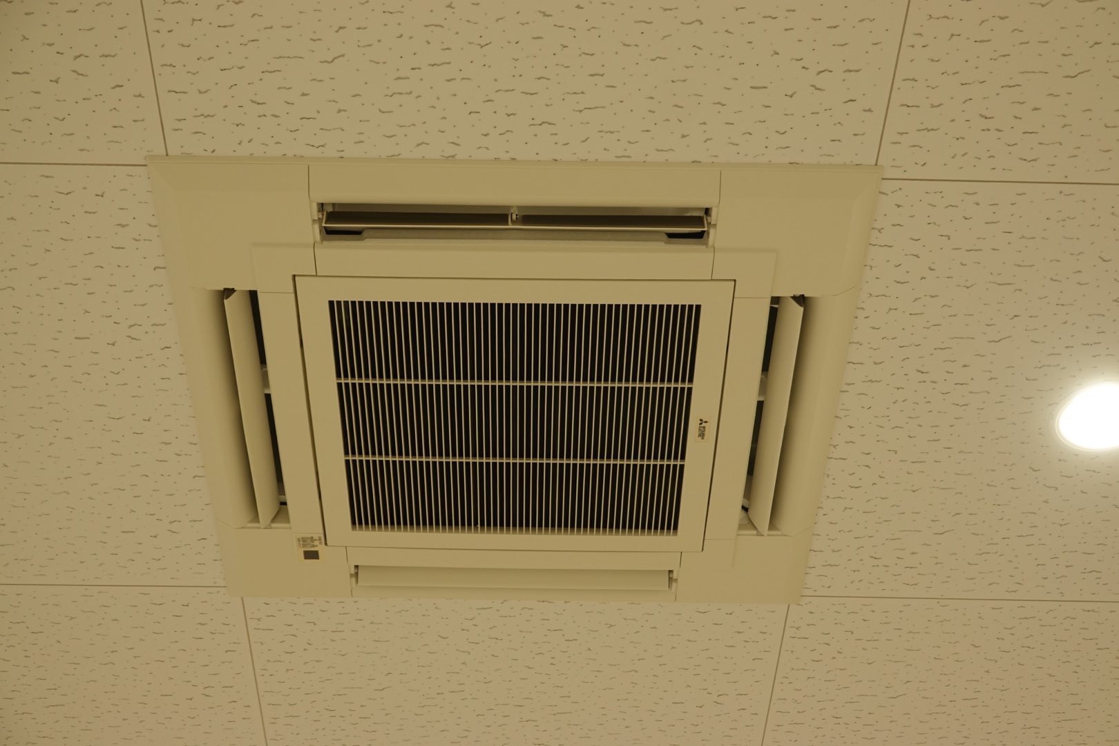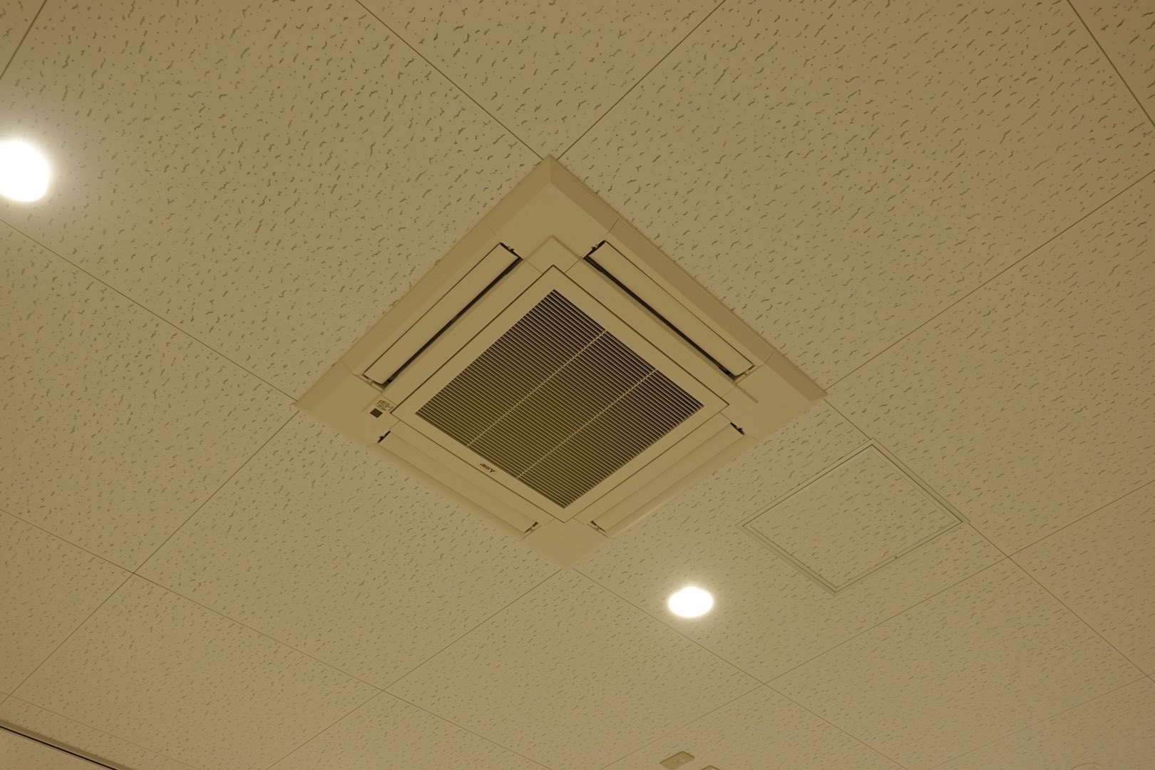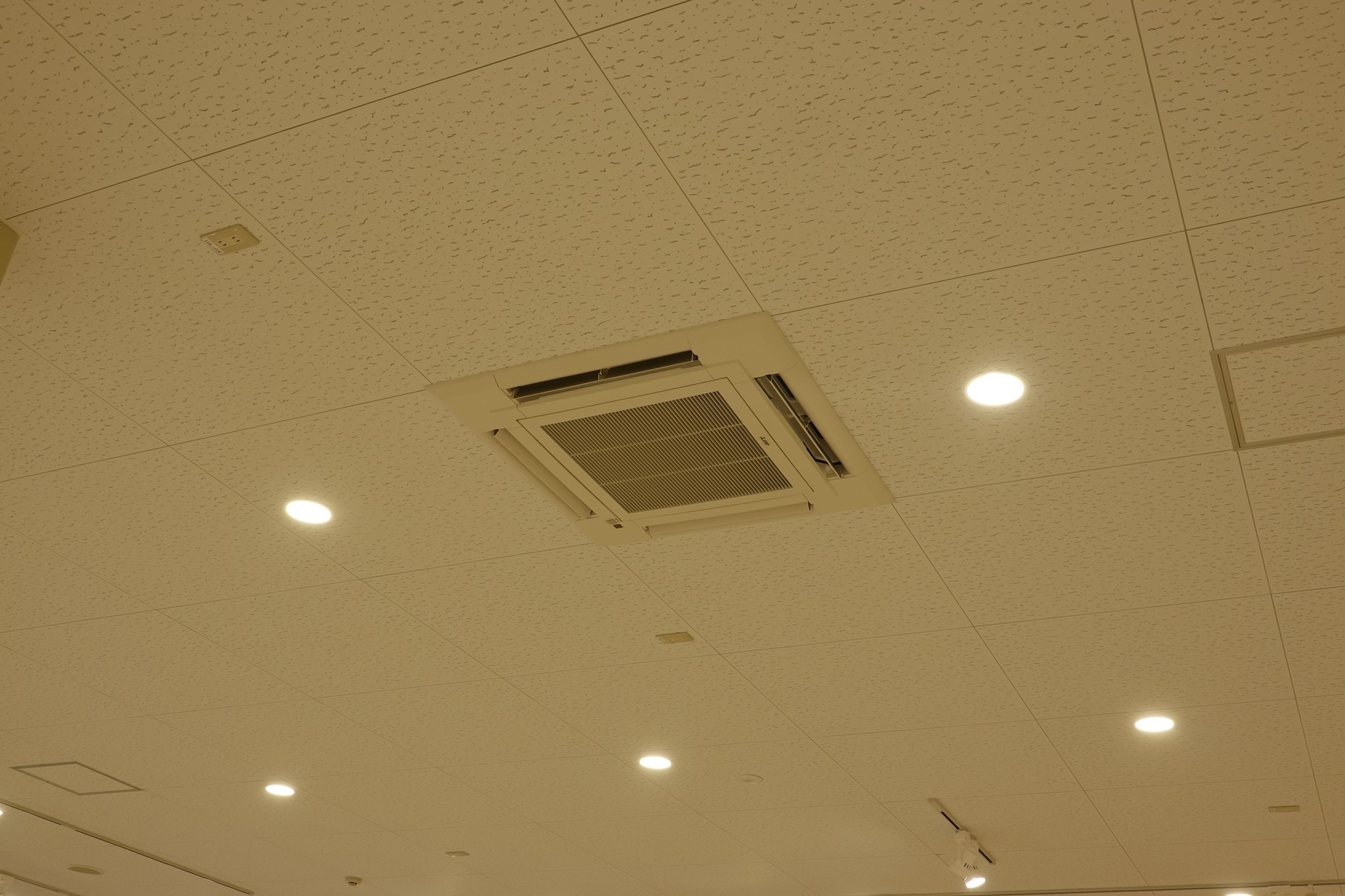 🏢【施工事例】事務所内 業務用エアコン設置工事(天カセ4方向・壁掛形) 大型内にて、日立製の業務用エアコン(天カセ4方向および壁掛形)を…
