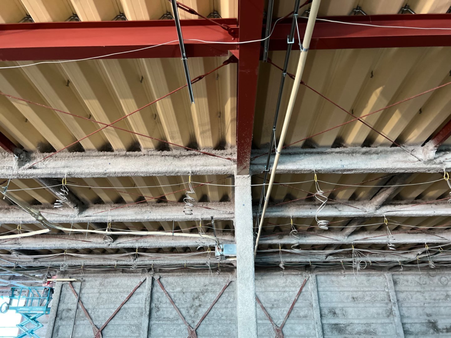 4.新規室内機吊り込み工事・新規室外機設置工事・架台据え付け工事。