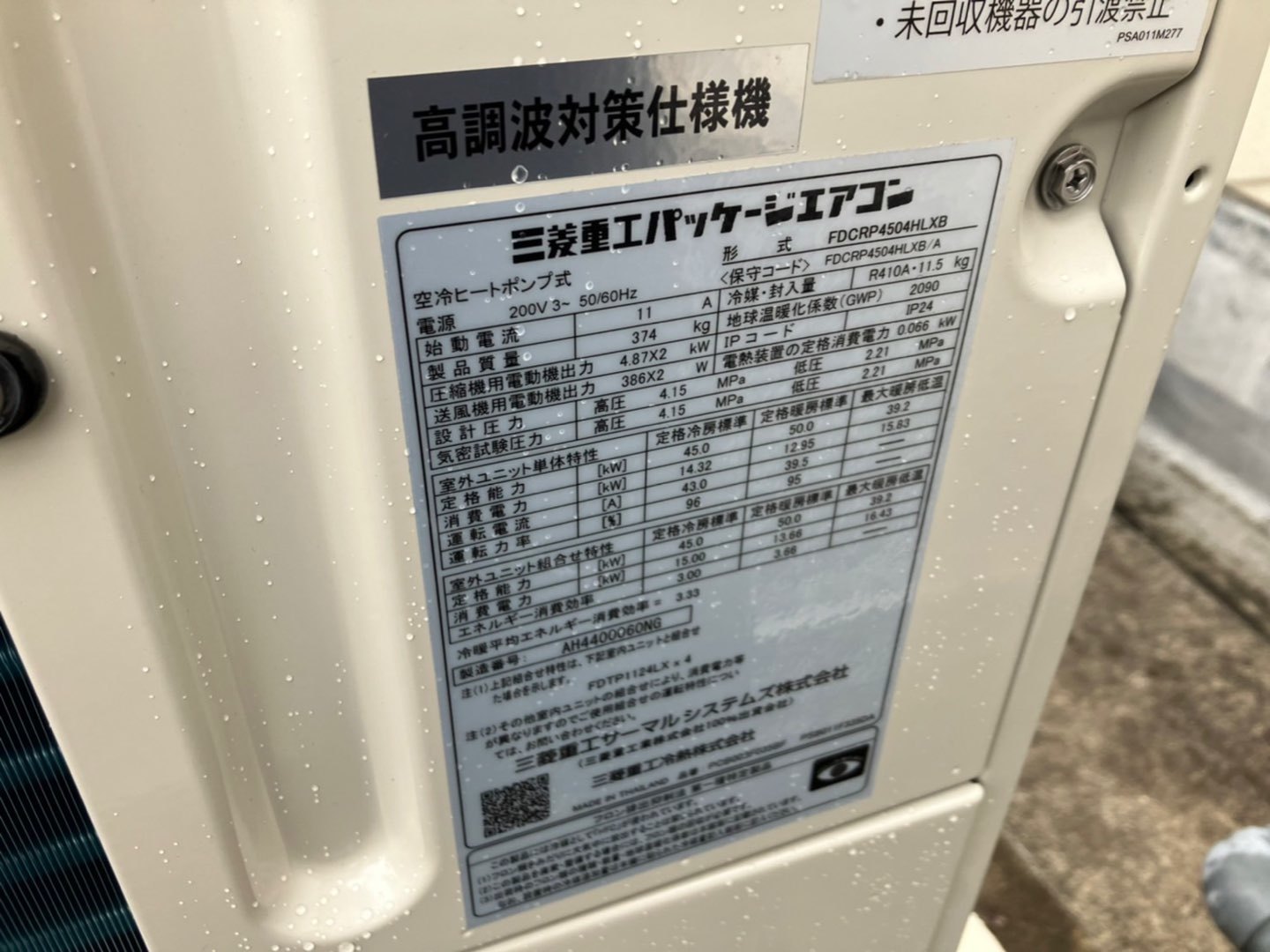 1.既存三菱重工製パッケージエアコン故障の為更新工事。
