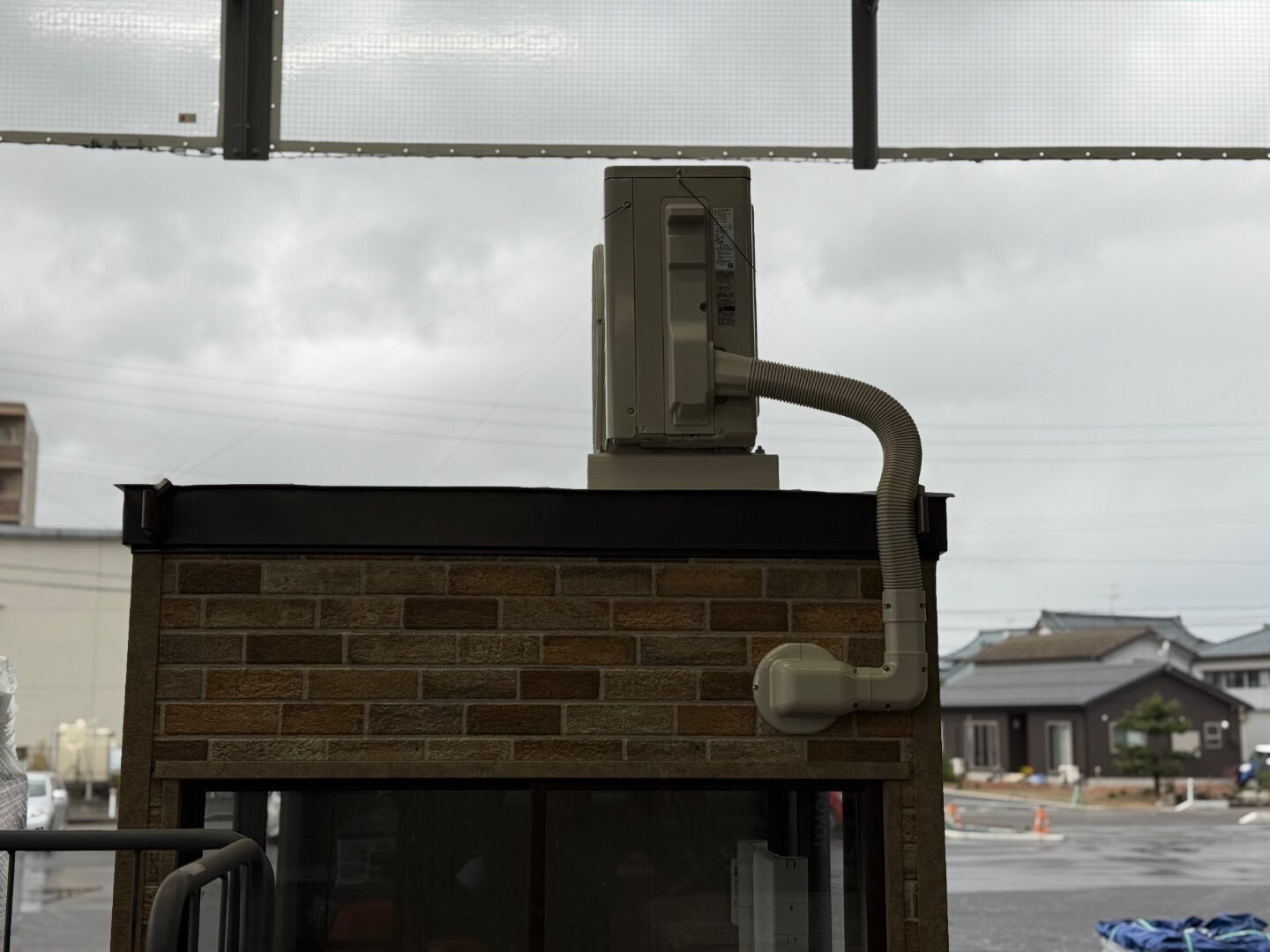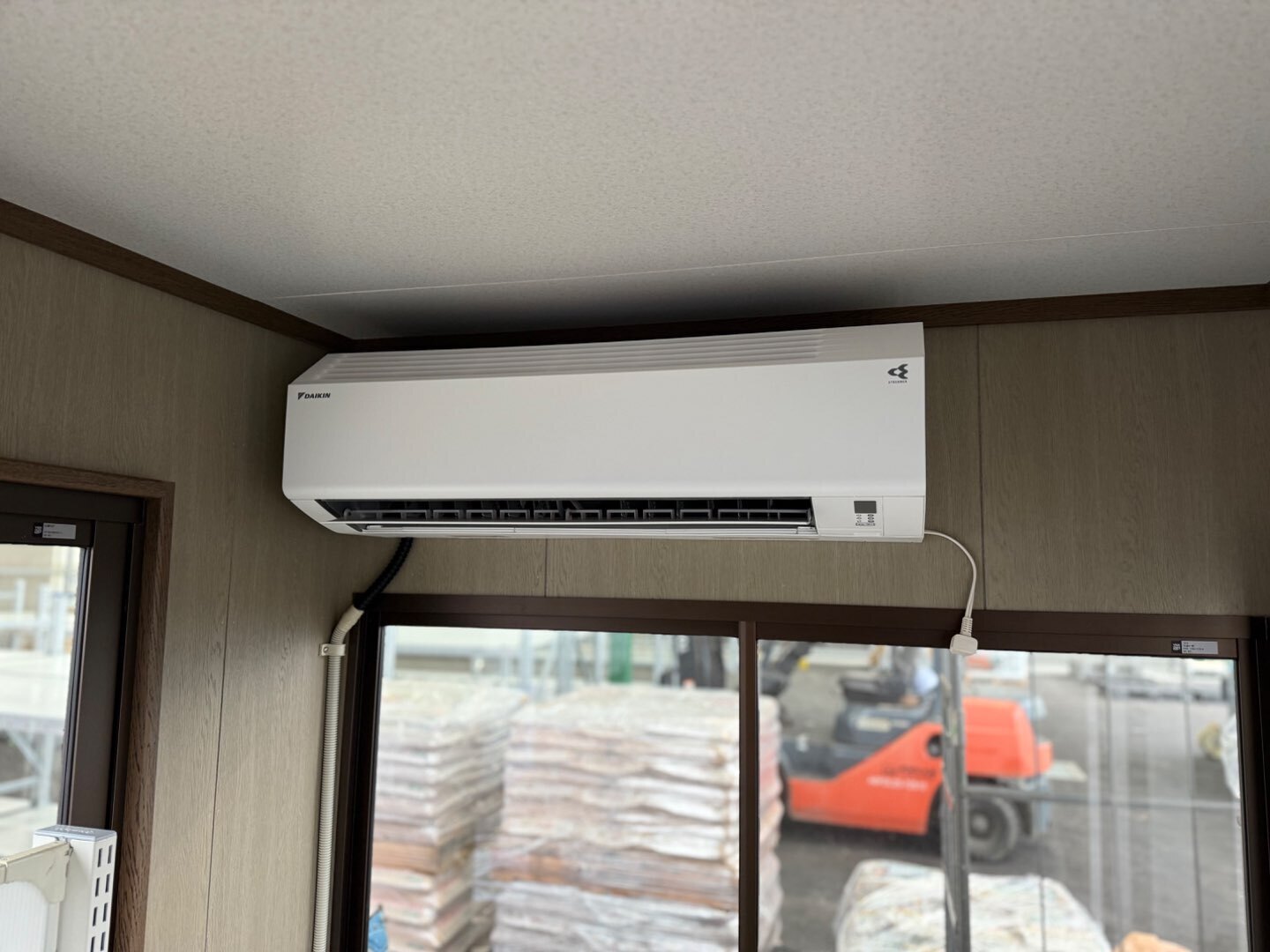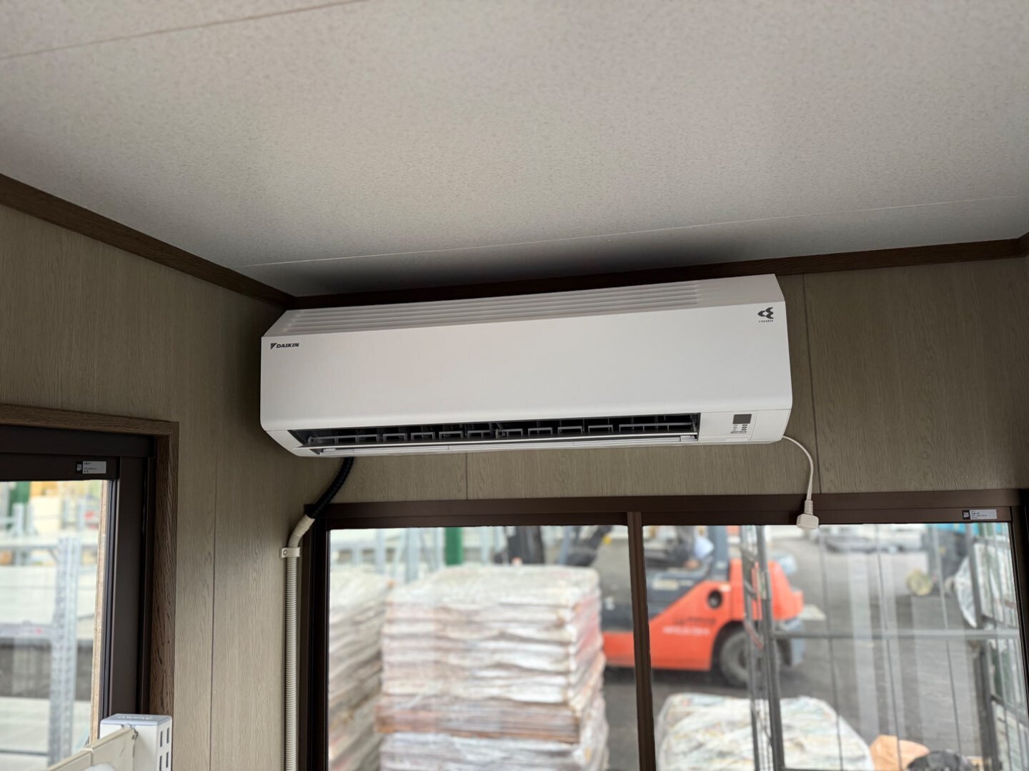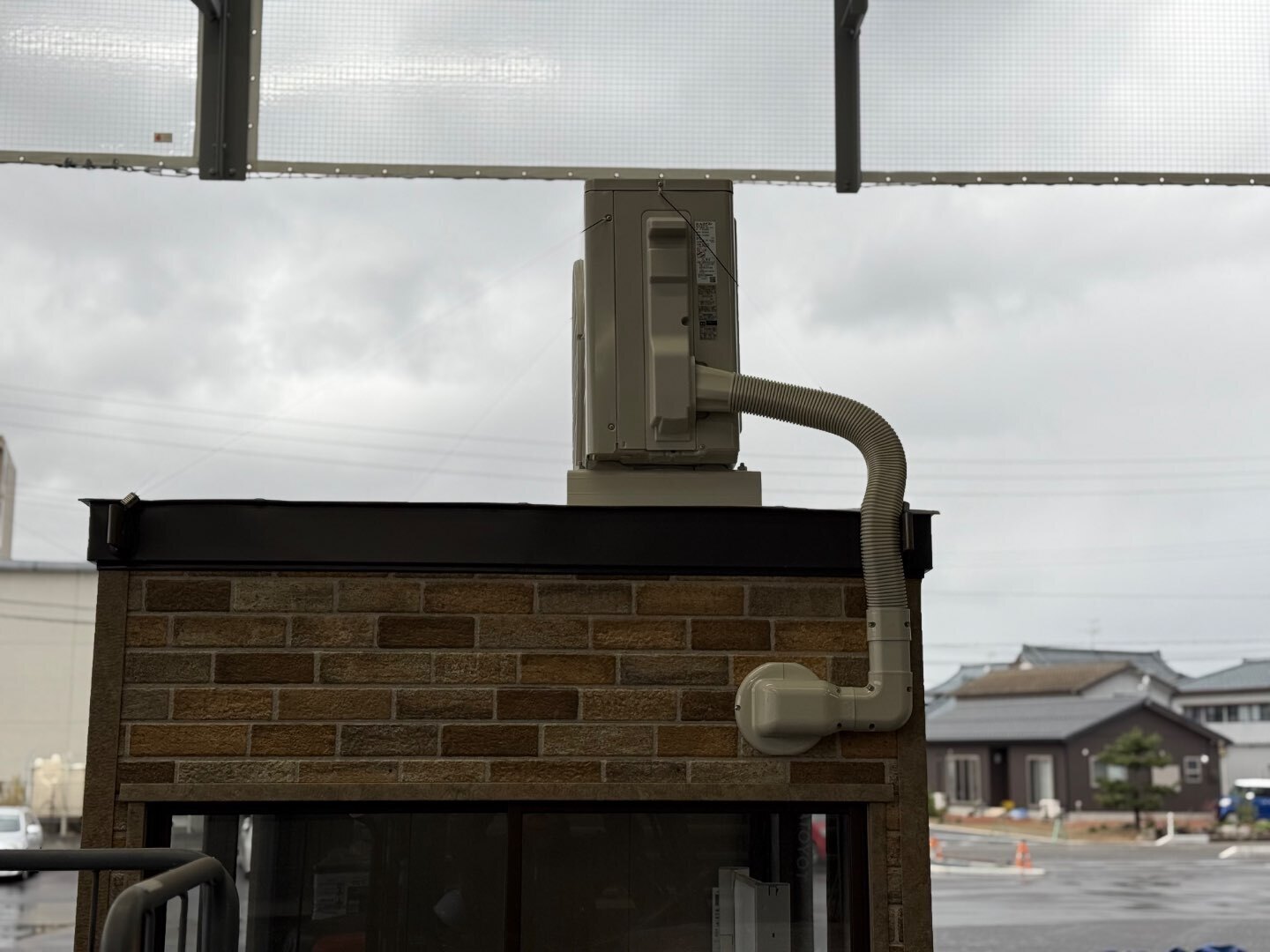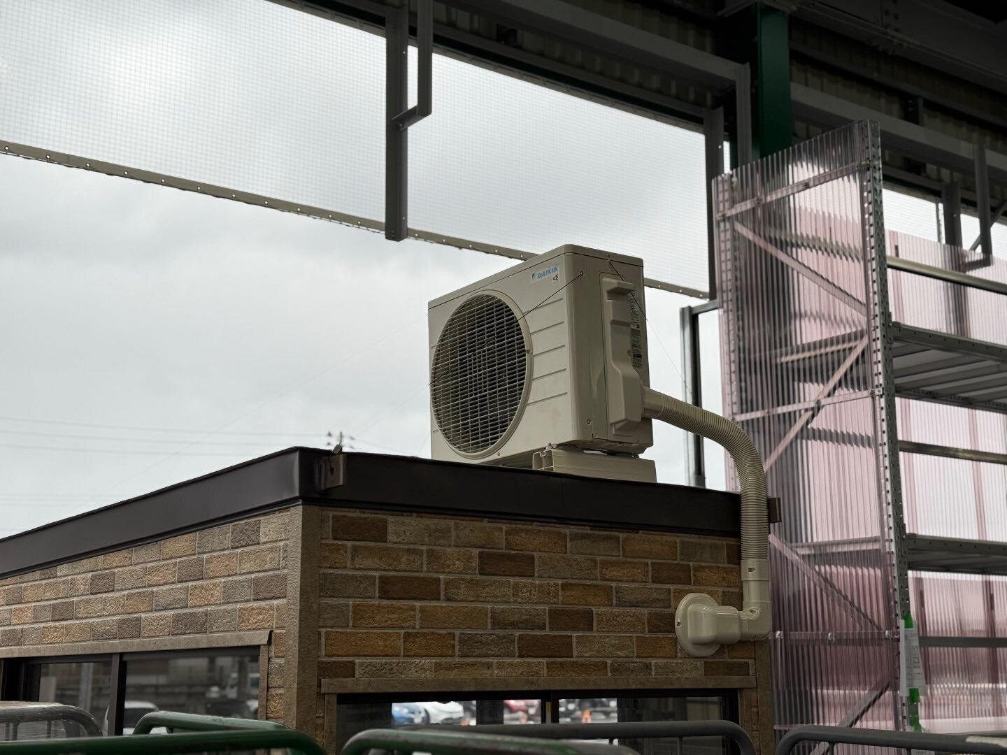 今回ご紹介するのは、店舗敷地内に新設された小型ハウス(詰所・管理室)のエアコン設置工事です。