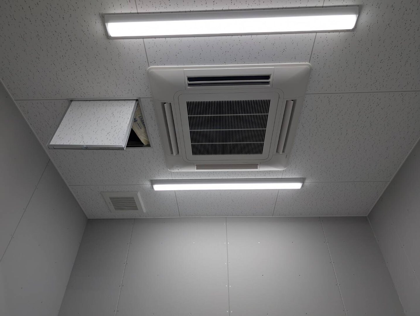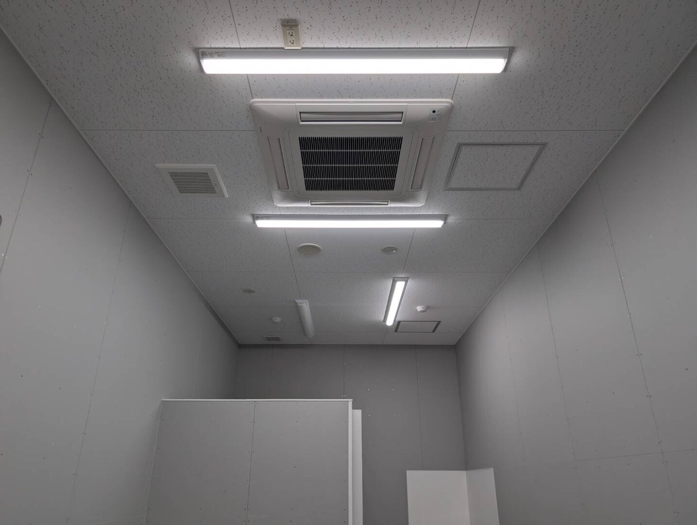 それぞれの部屋の用途に合わせ、天カセ・壁掛け・換気扇を組み合わせて施工しました。