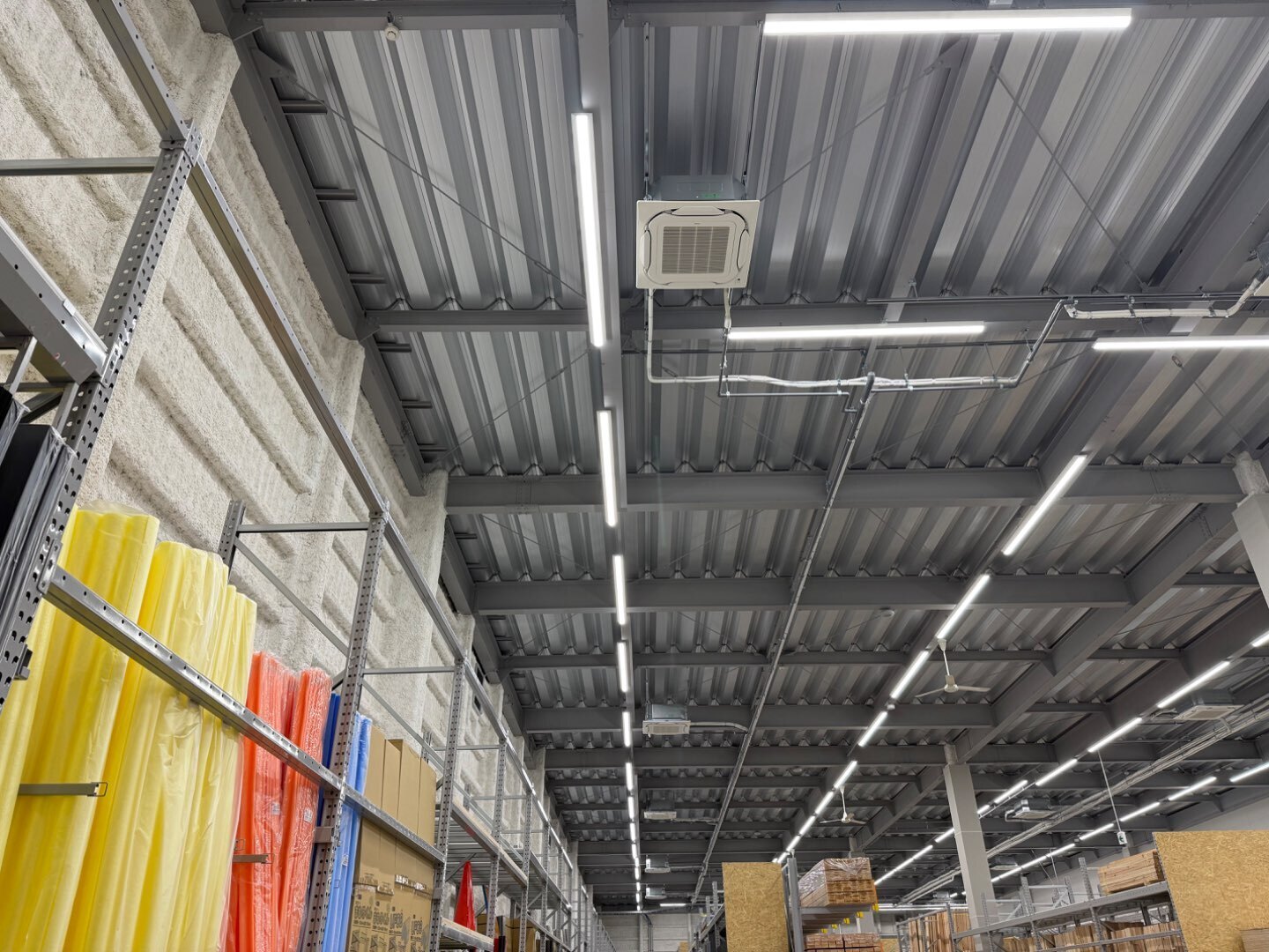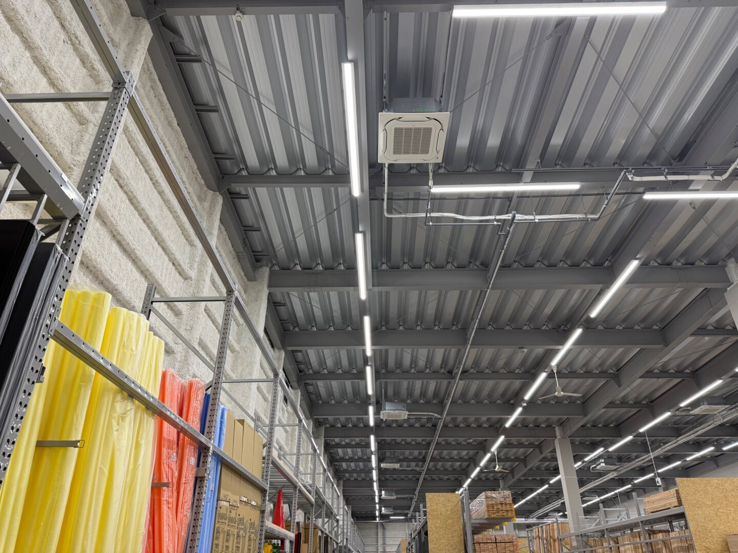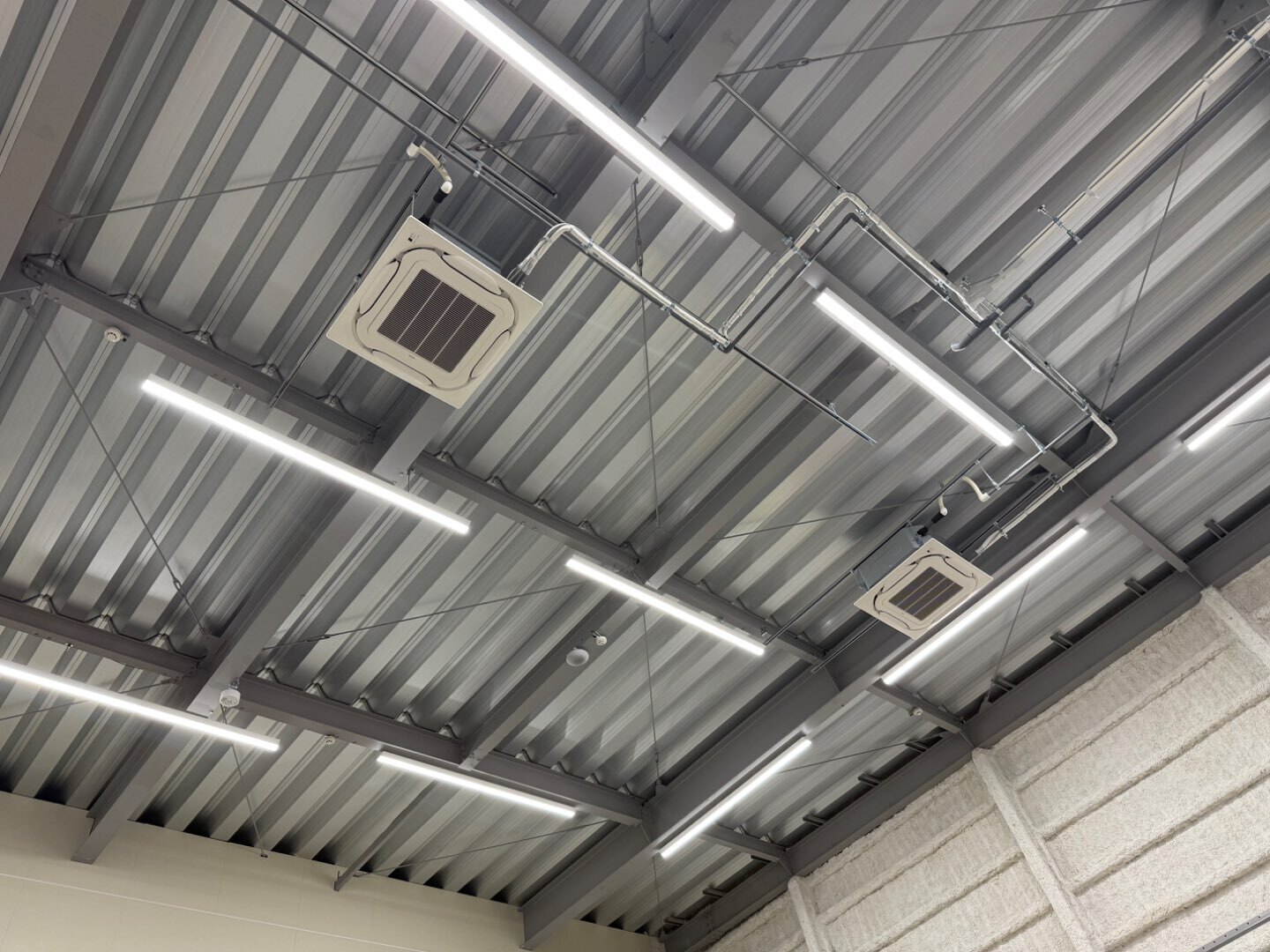 写真の通り、広い売場でもエアコン・ダクト・照明が整然と並び、
