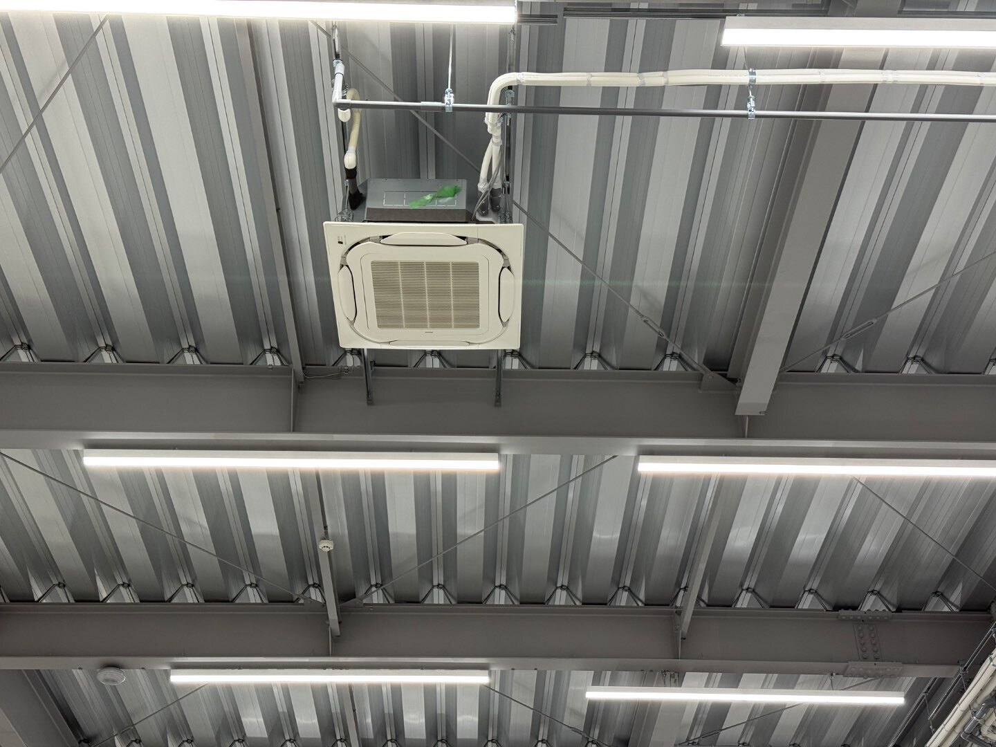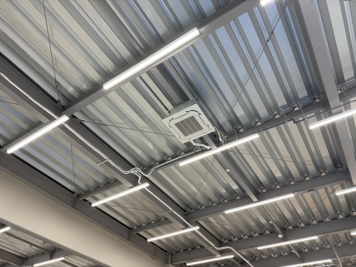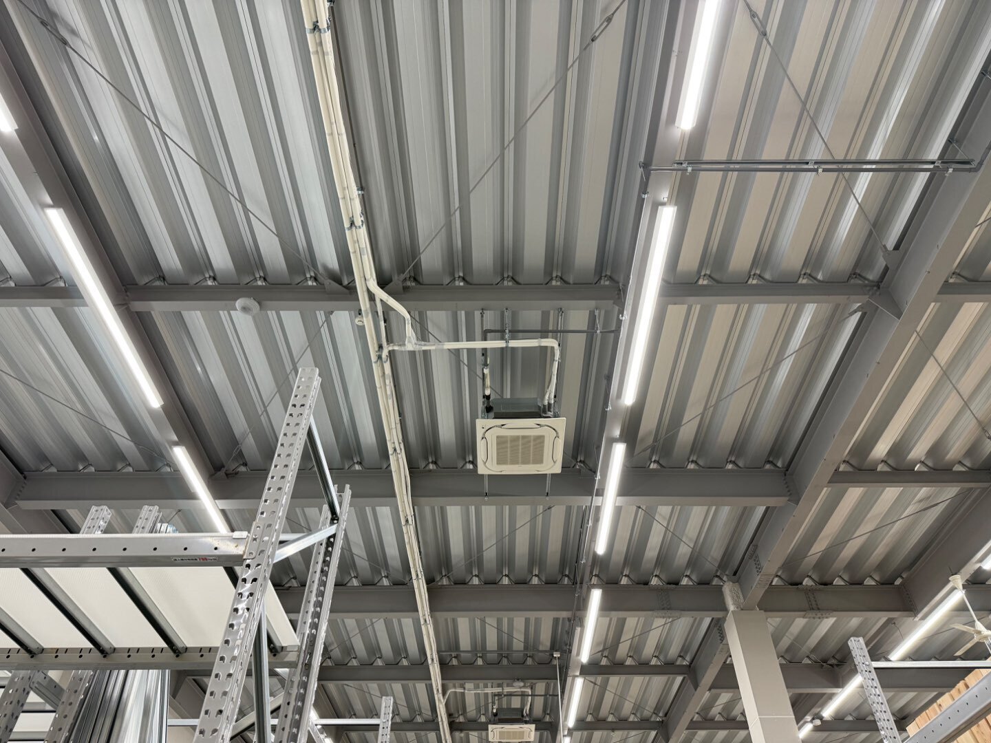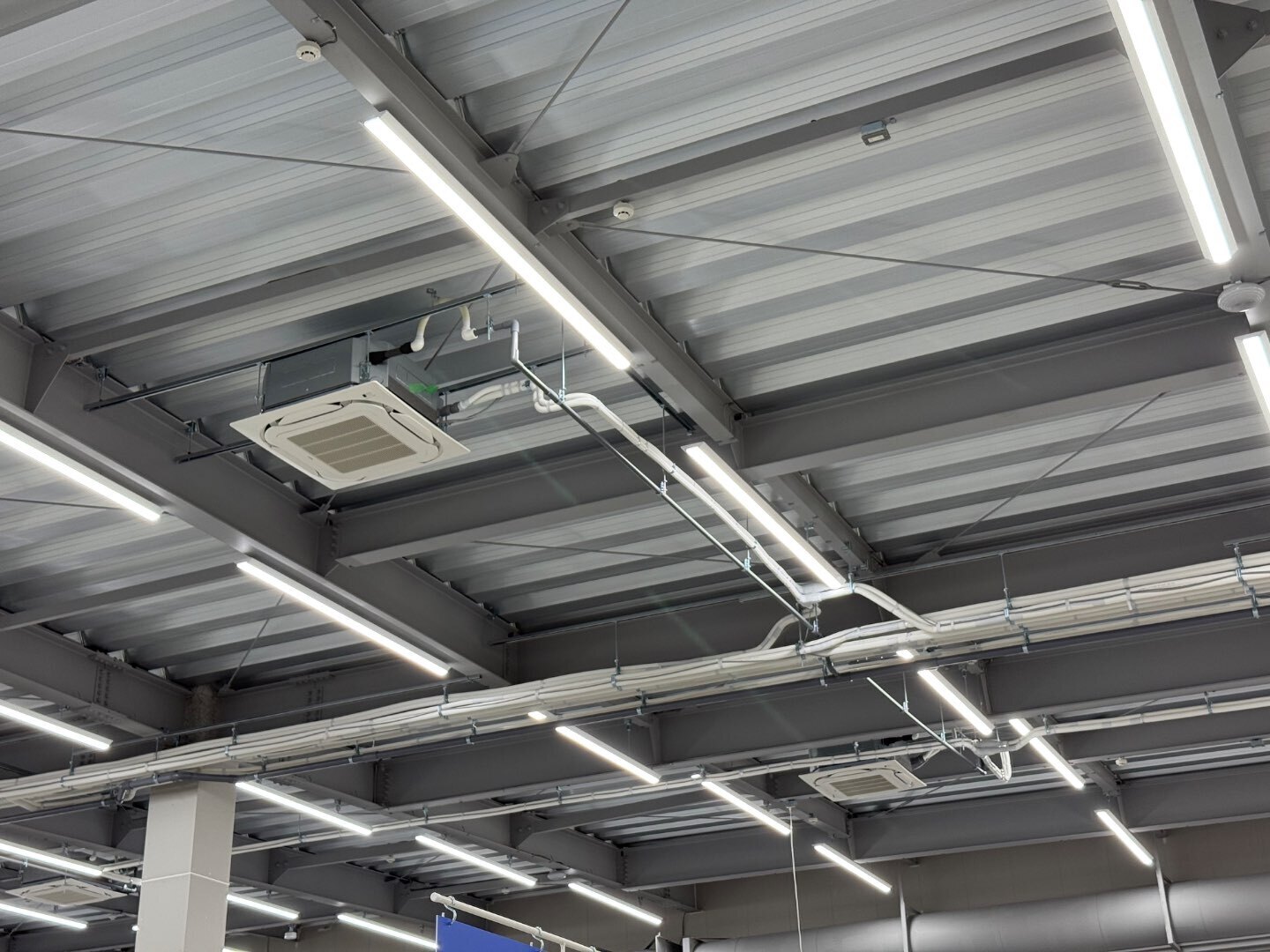 写真の通り、広い売場でもエアコン・ダクト・照明が整然と並び、