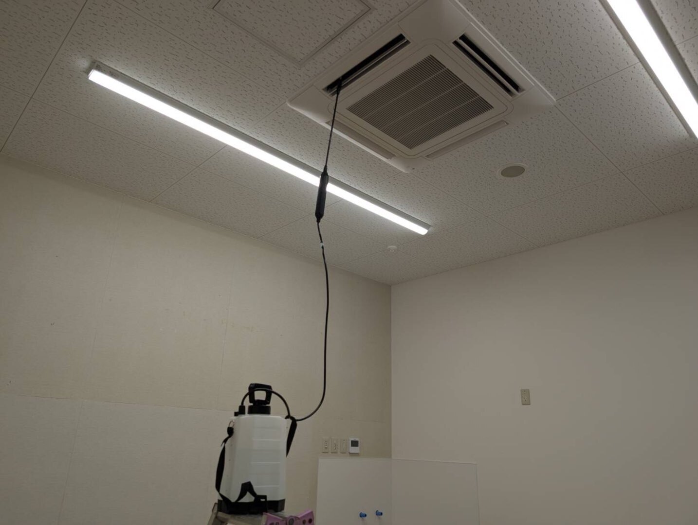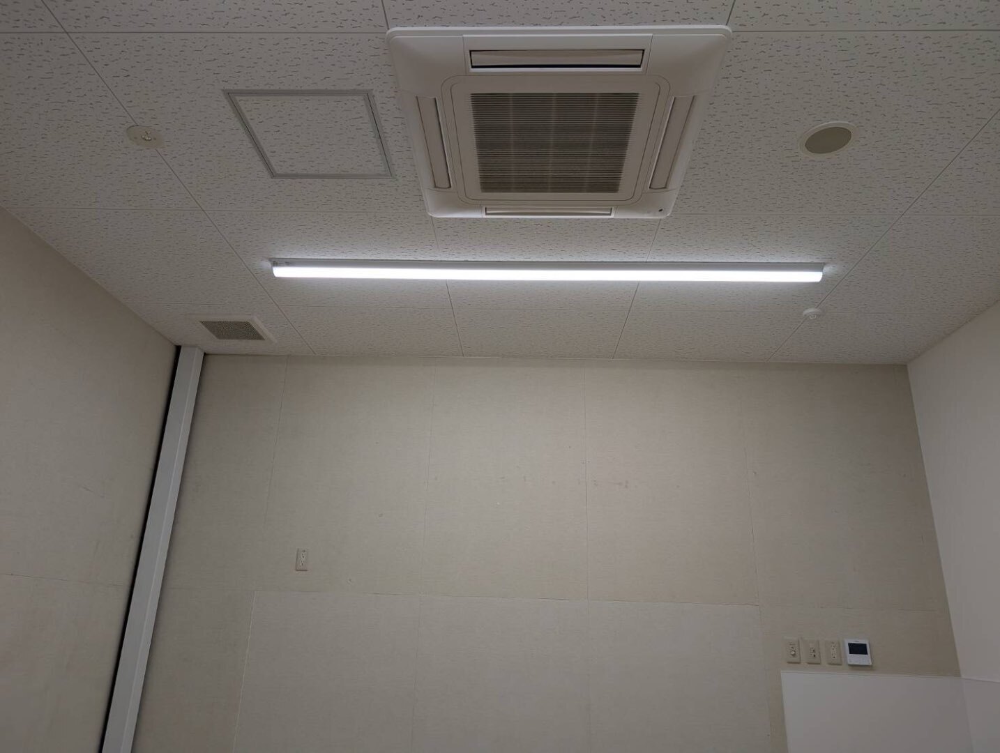写真の通り、応接室・事務所スペースには 壁掛形エアコン を設置。