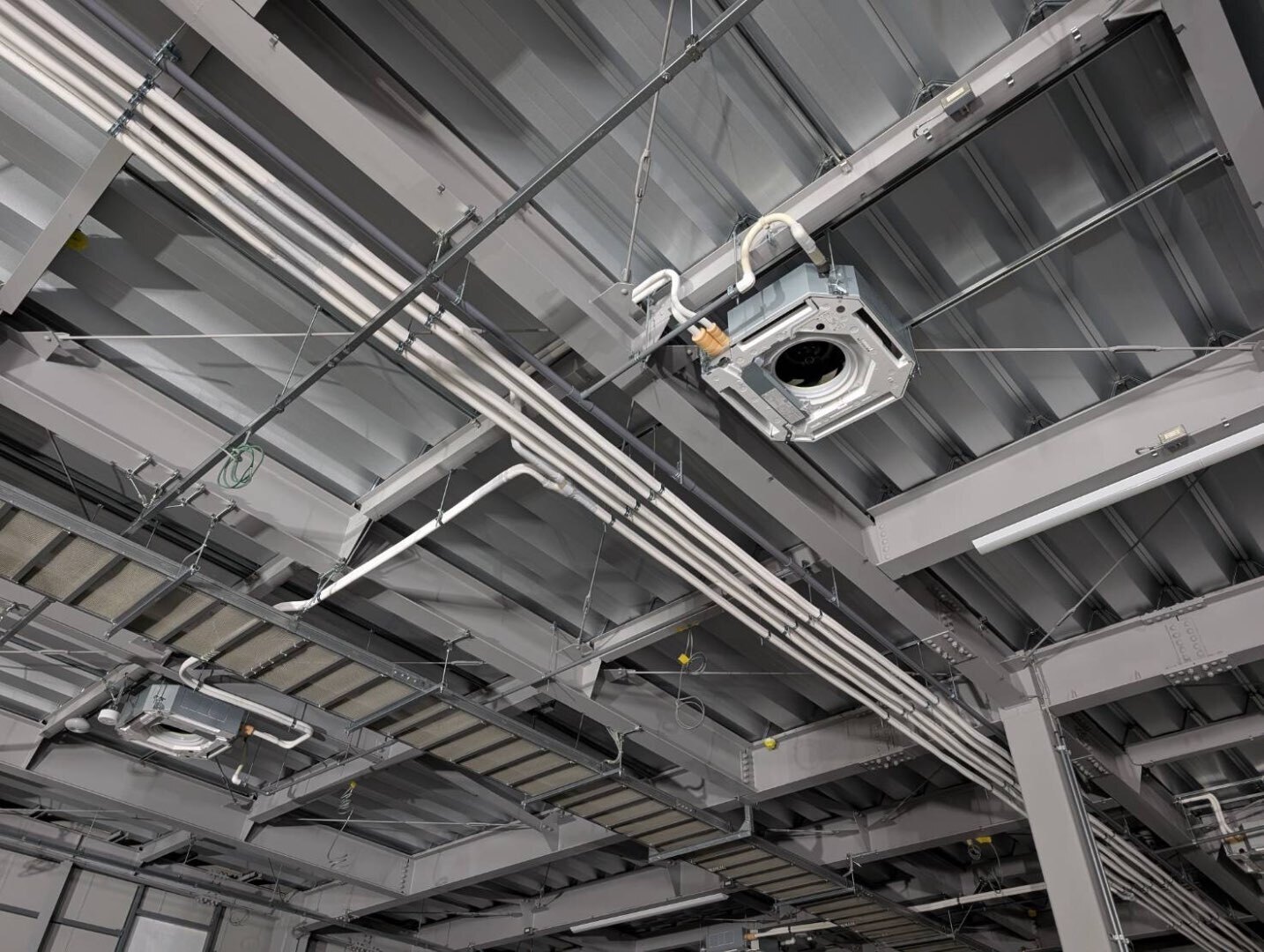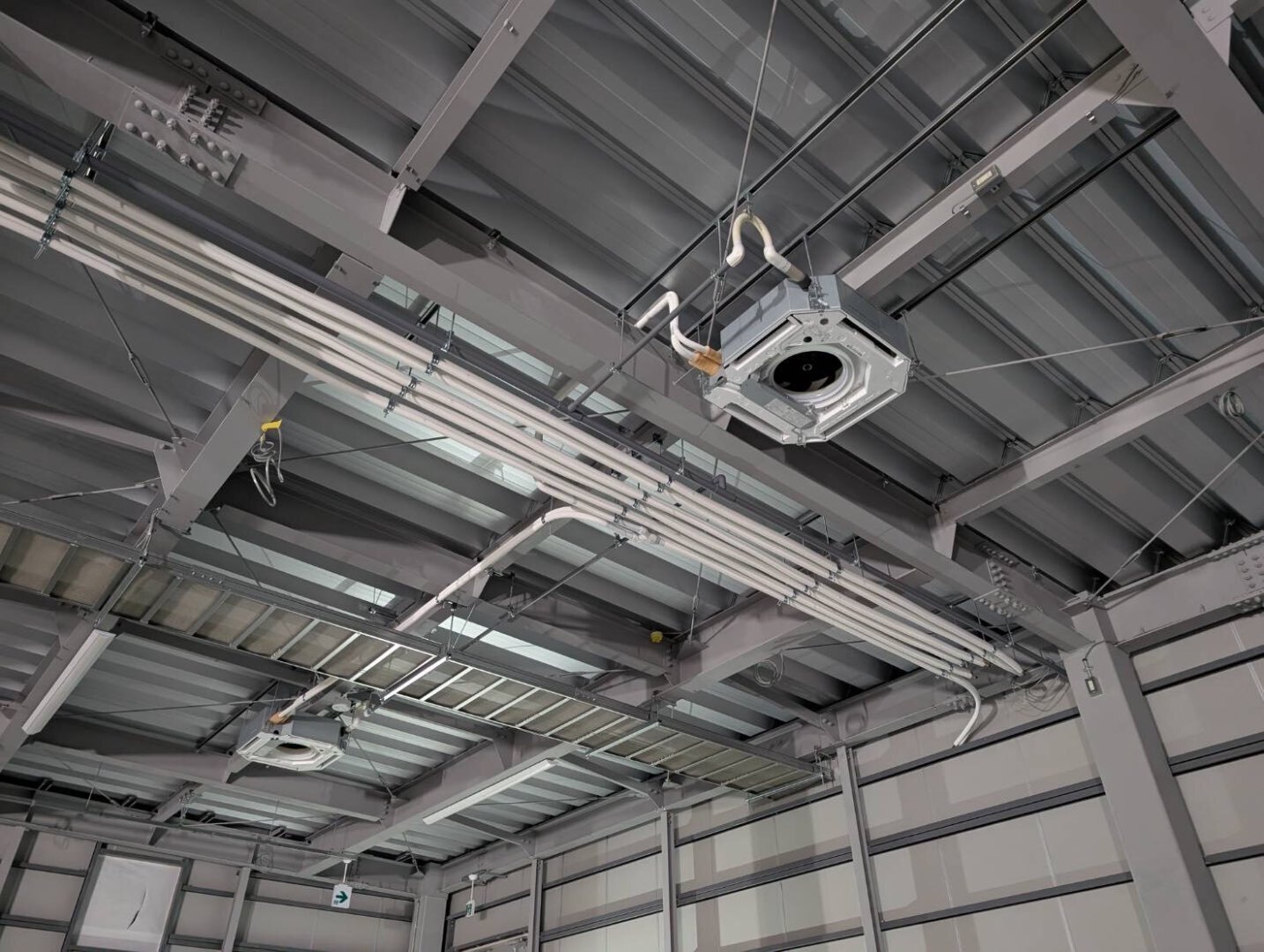 【施工事例】新築大型倉庫|業務用エアコン新規設置工事(4方向天カセ)