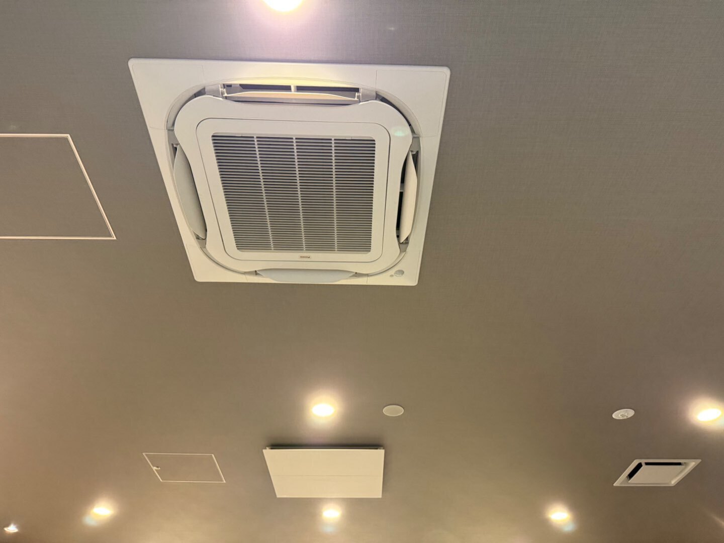 空調機が目立ちすぎない納まりを重視して施工を行いました。