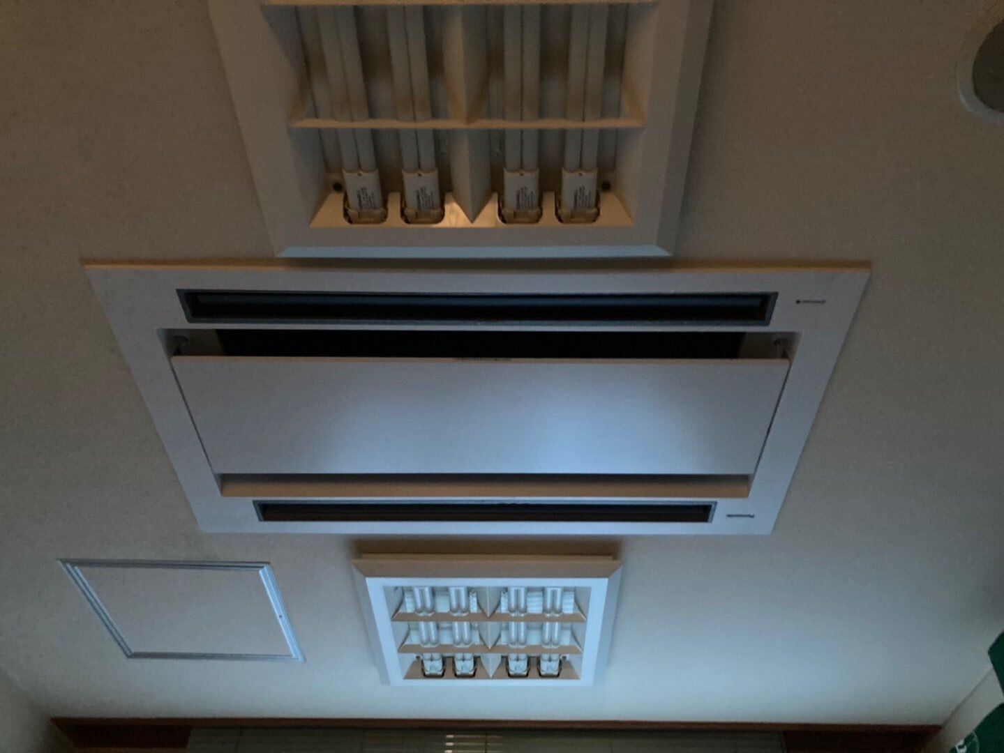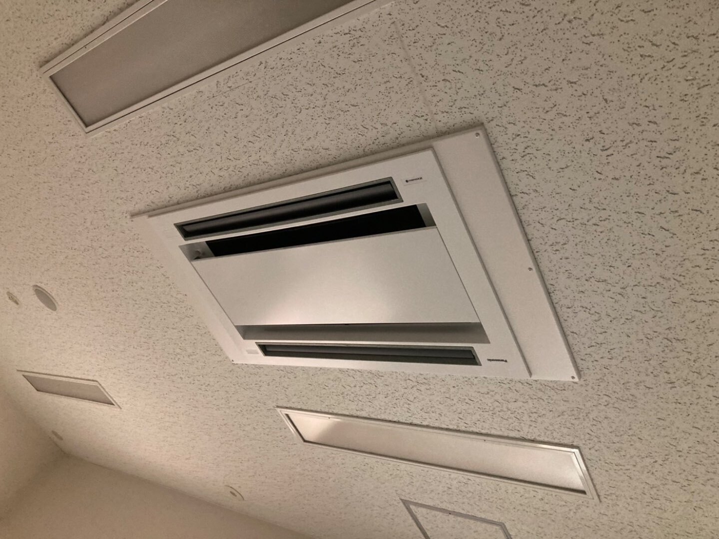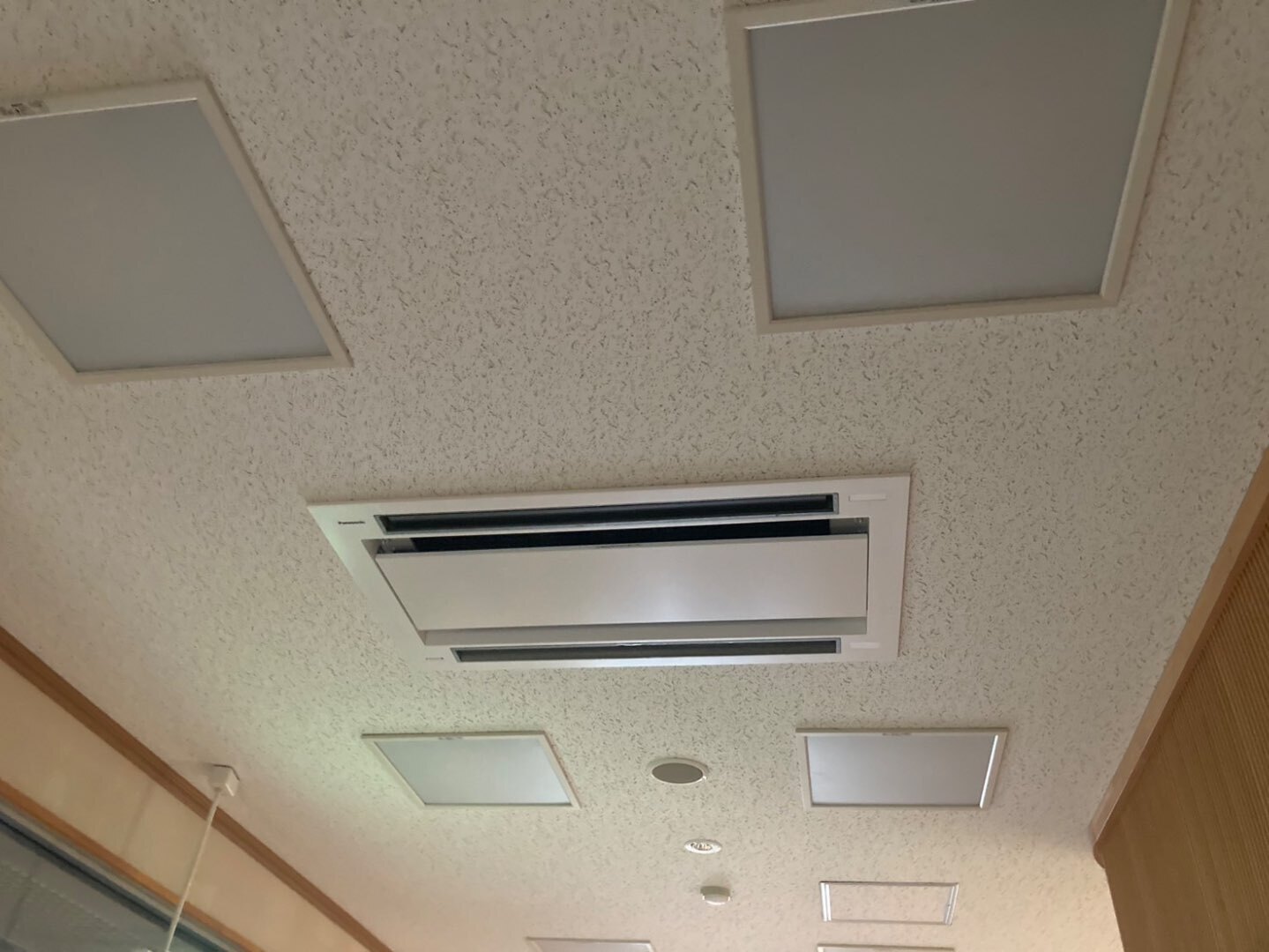 天井埋込型室内機は既存の開口を活かしつつ、内装への影響を最小限に抑えた更新としています。