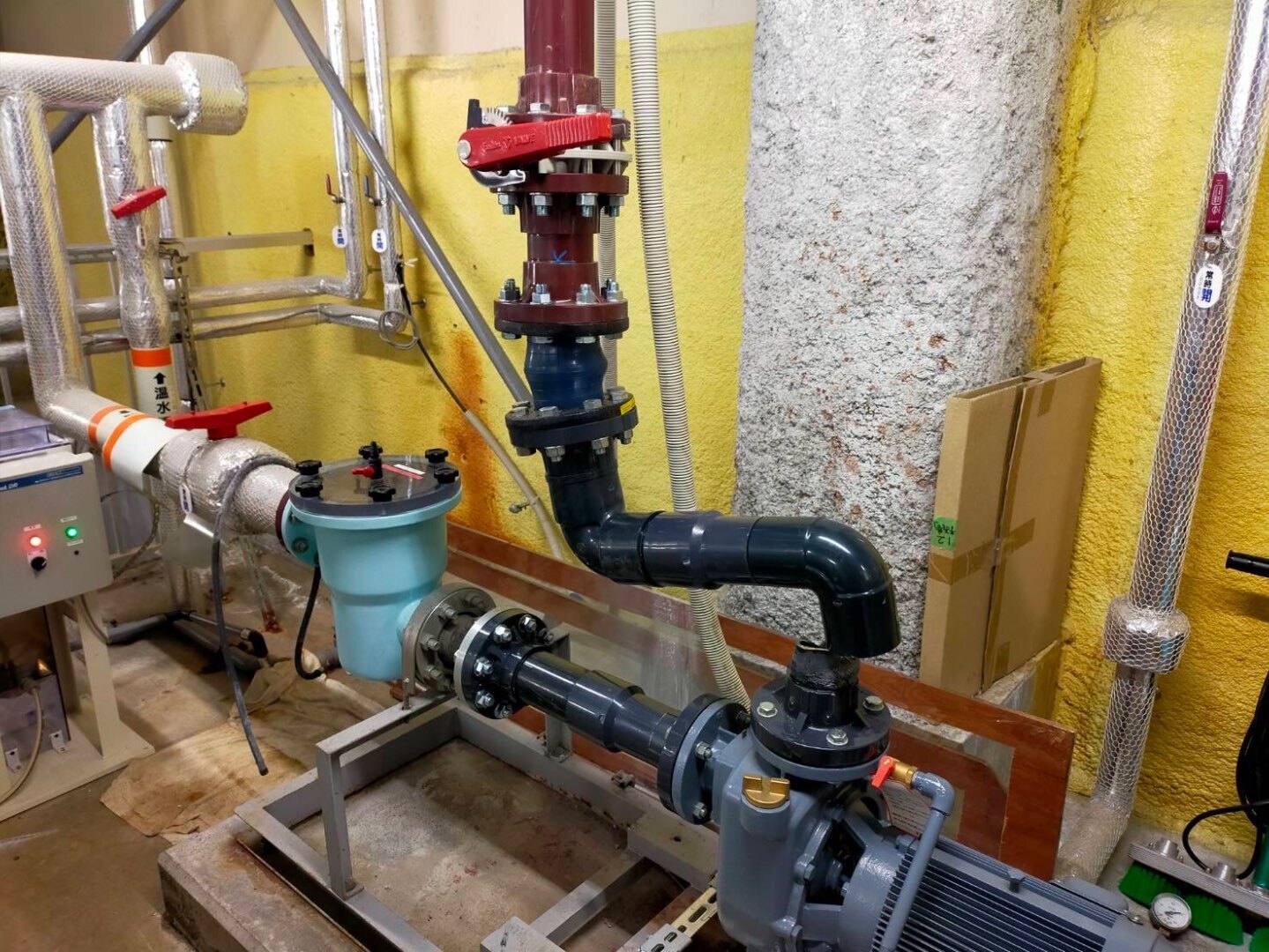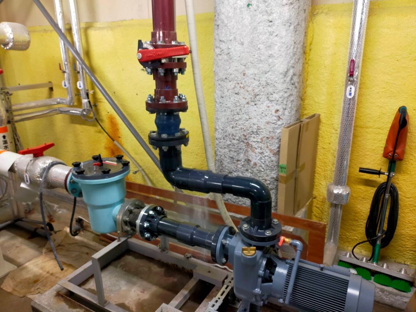 ホテル施設における機械室は、給湯設備・空調設備・濾過設備など、建物全体の機能を支える重要な設備が集約されている場所です。特に濾過ポンプは、浴場設備や循環設備の安定稼働に直結するため、配管トラブルが発生した場合には迅速かつ確実な対応が求められます。