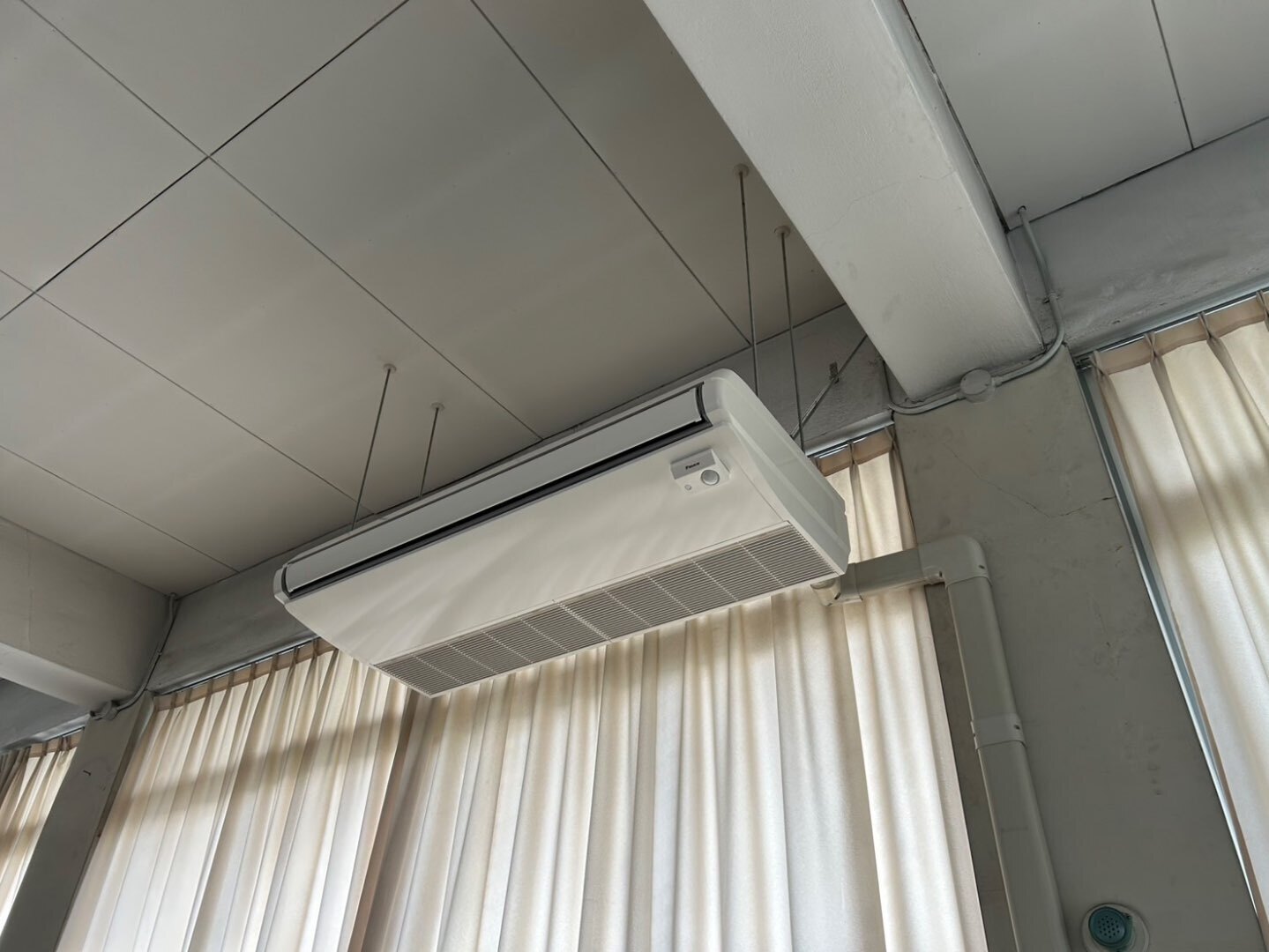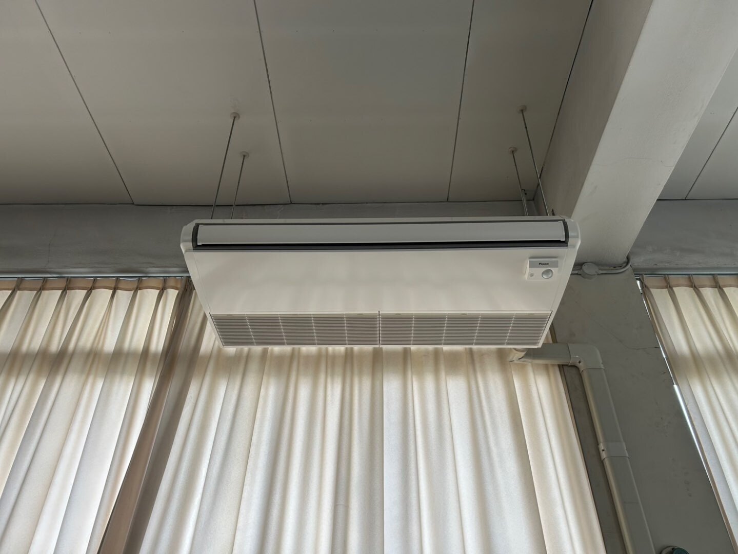今回の室内機は、窓際上部に天吊形で設置しております。