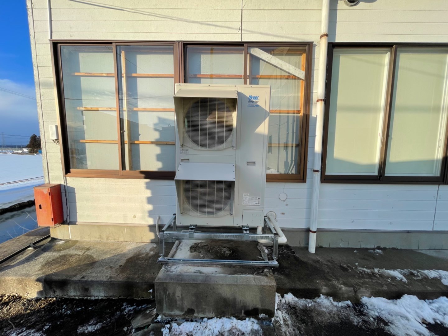 宮城県加美郡加美町 工場施設様 三菱重工製10馬力・8馬力床置き型業務用エアコン取付工事