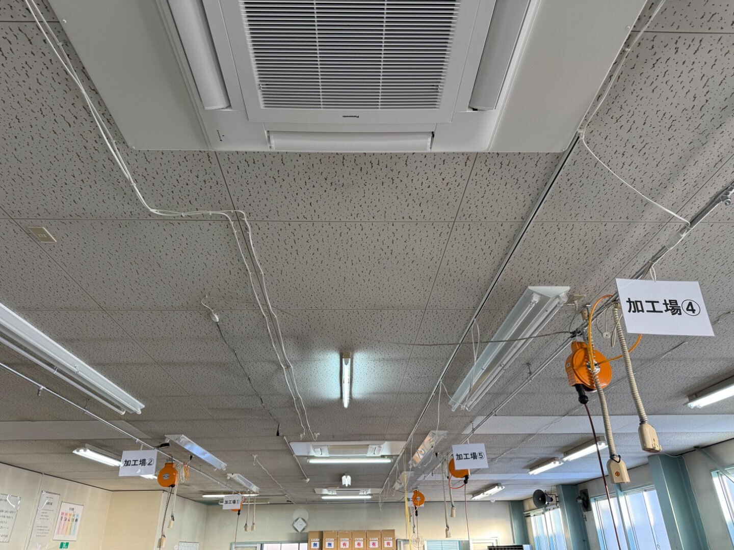 本施設は、加工機械が複数設置された作業エリアを含むため、室内の温度ムラを抑え、安定した空調環境を確保することが重要なポイントとなります。