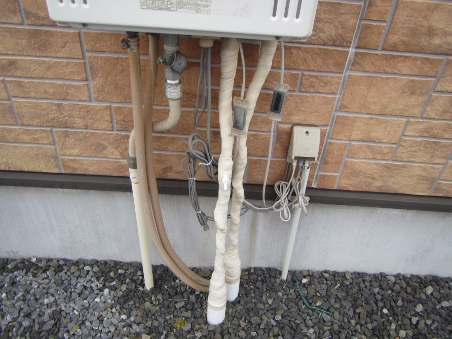 凍結防止ヒーターの件:以前は地面に直接置いてあったのが、結束バンドできちんとやってもらった。