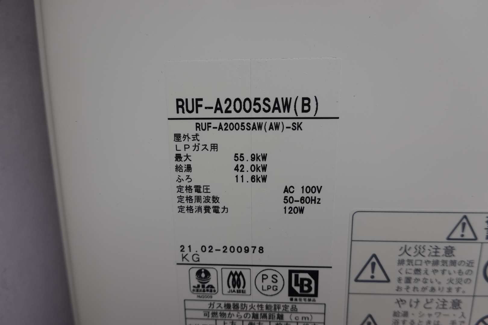 4.新規情報 リンナイ ガスふろ給湯器 型式 RUF-A2006SAW LPG用。