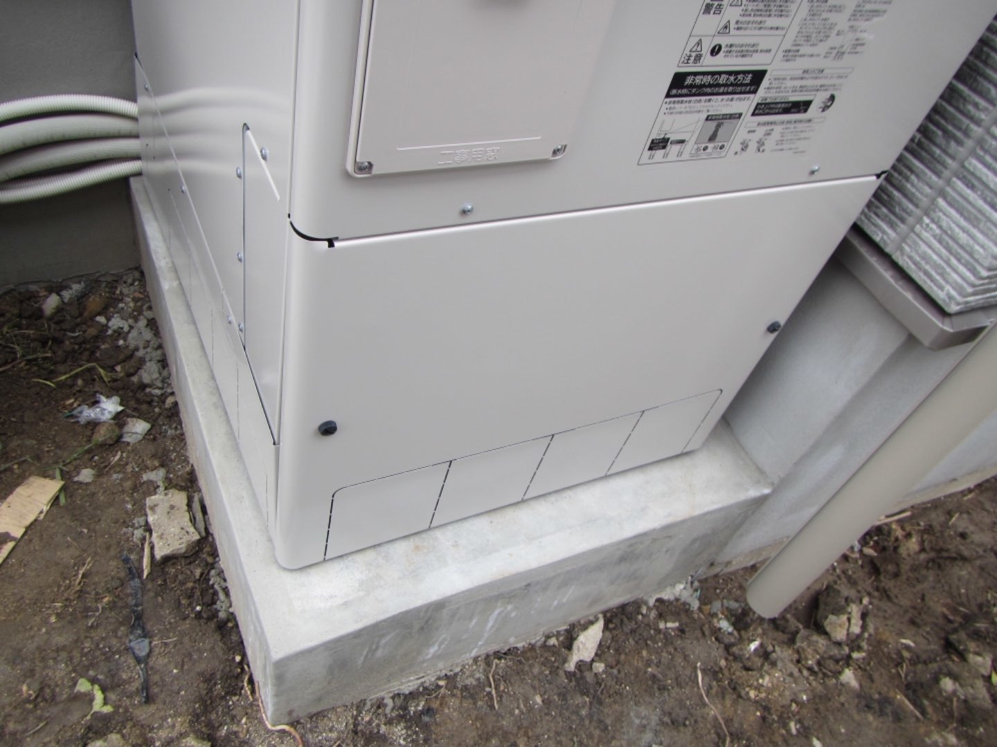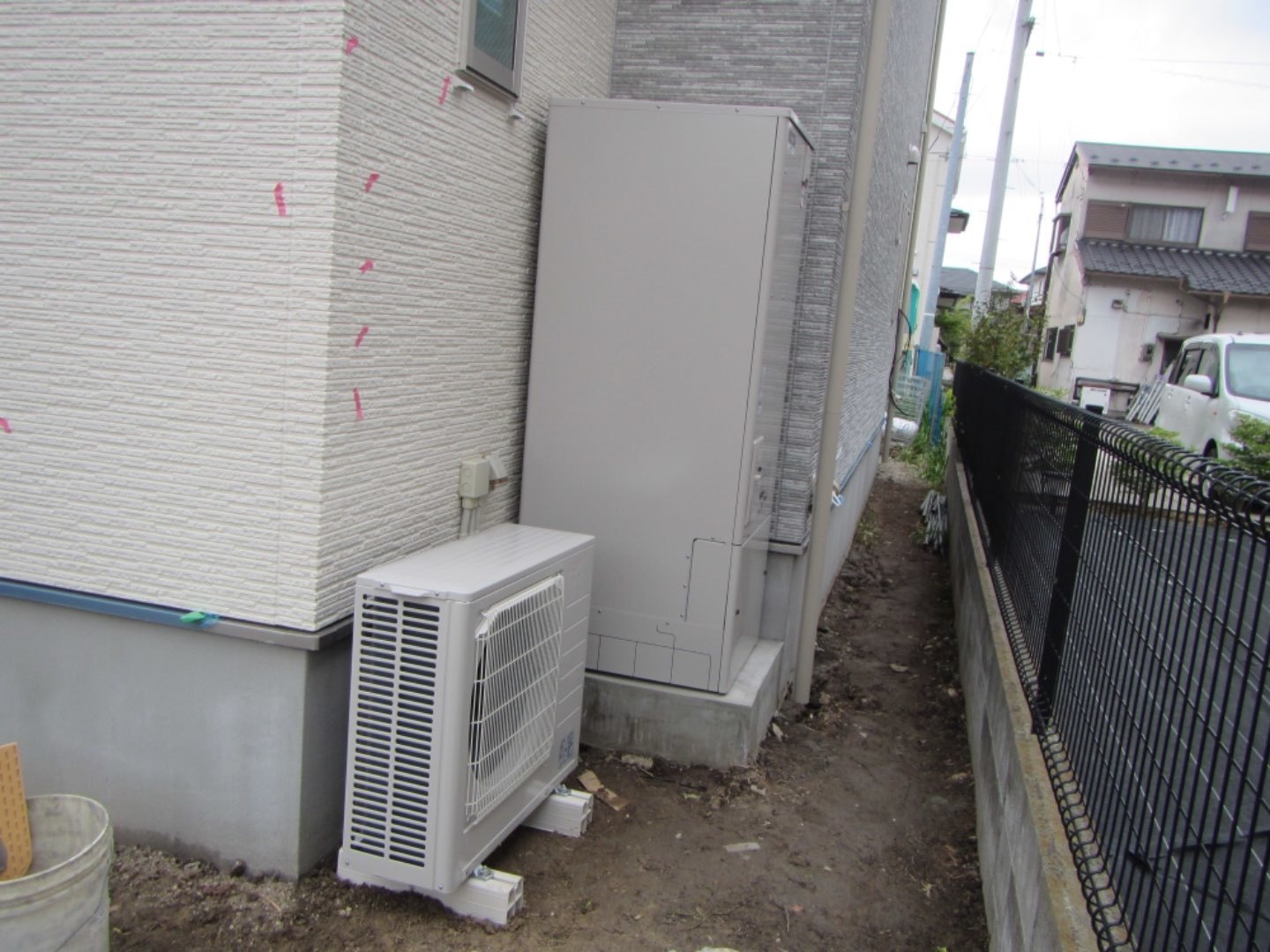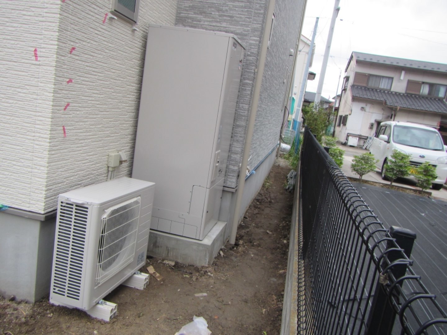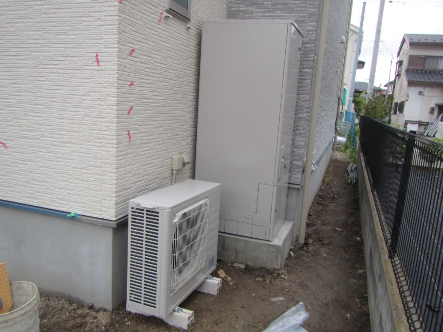 1.新築戸建て建築に伴う新規エコキュート取付工事。