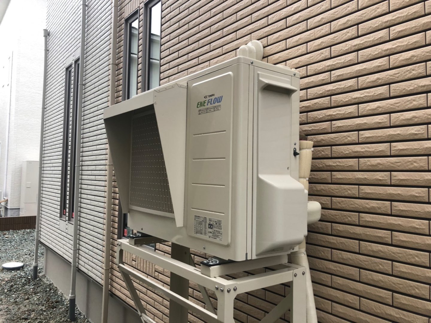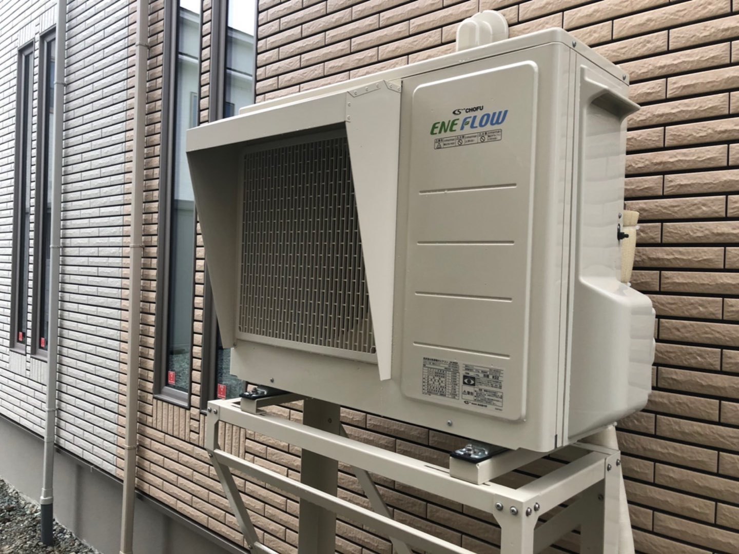 山形県東根市 戸建て新築現場様 長府製作所 ヒートポンプ床暖房エアコン新規取付工事