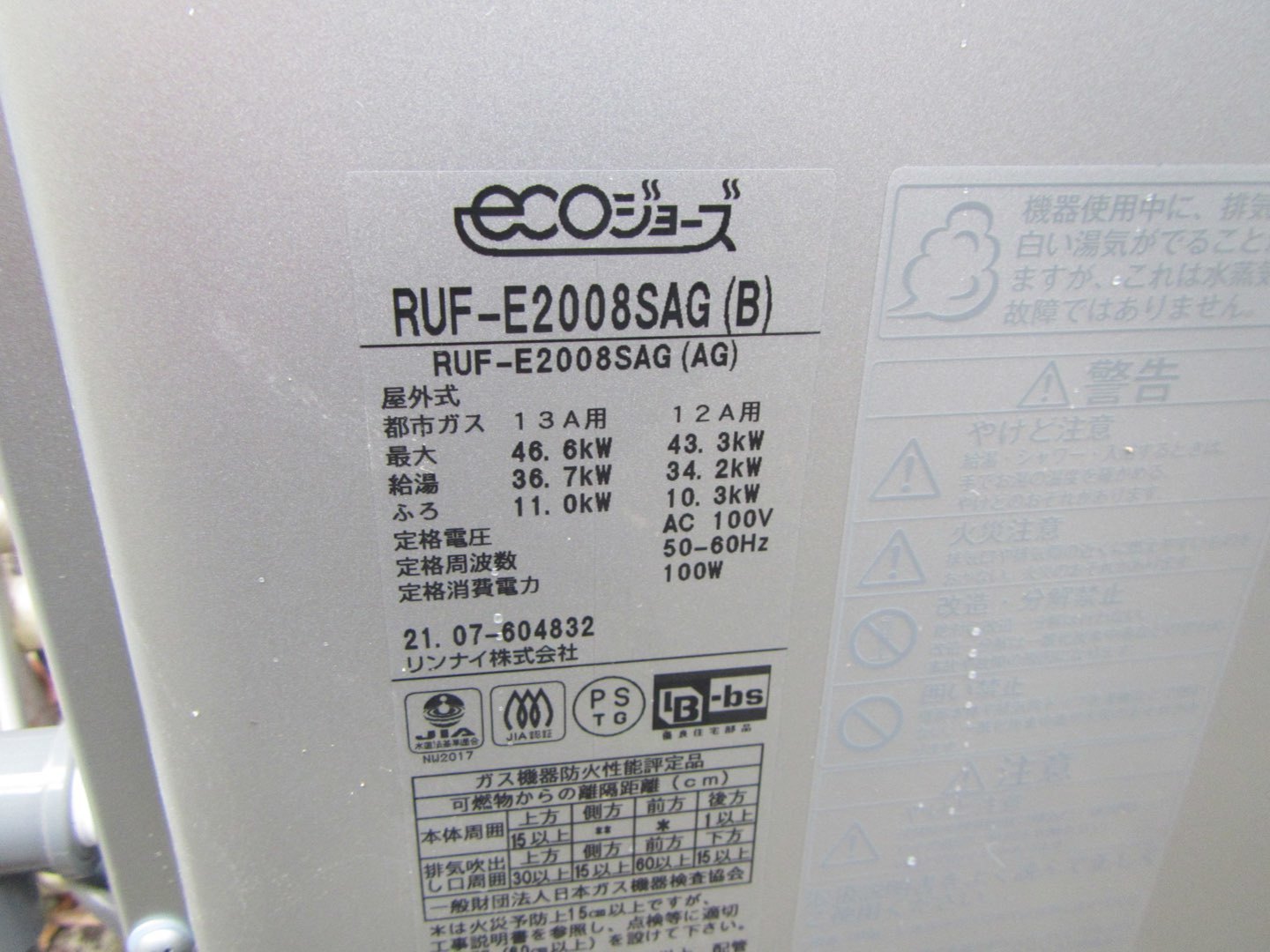9.新規機器情報 リンナイ ガスふろ給湯器 エコジョーズ