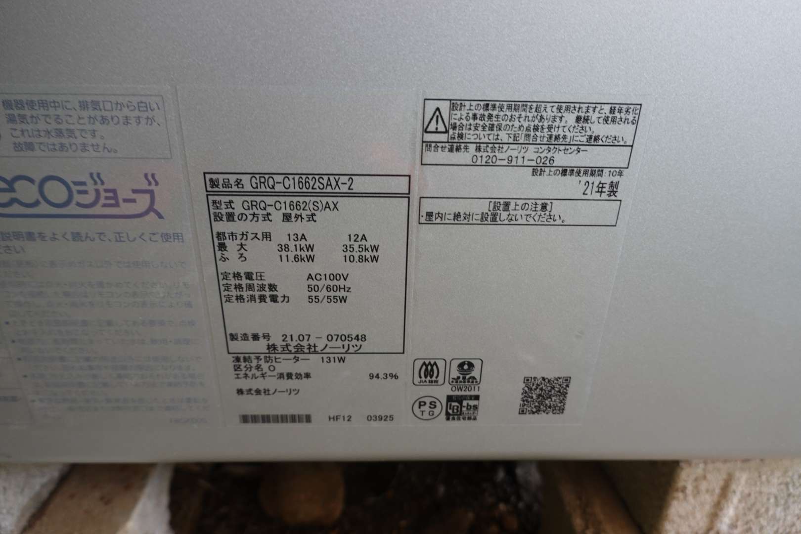 10.新規 ノーリツ製 エコジョーズ ガスふろ給湯器