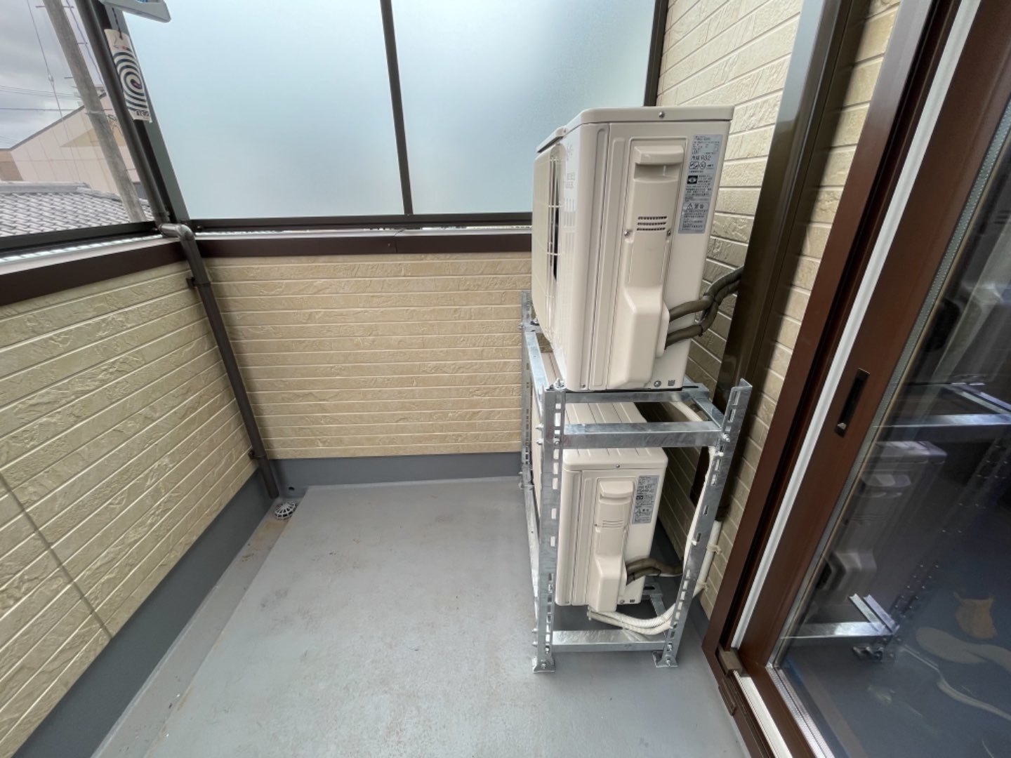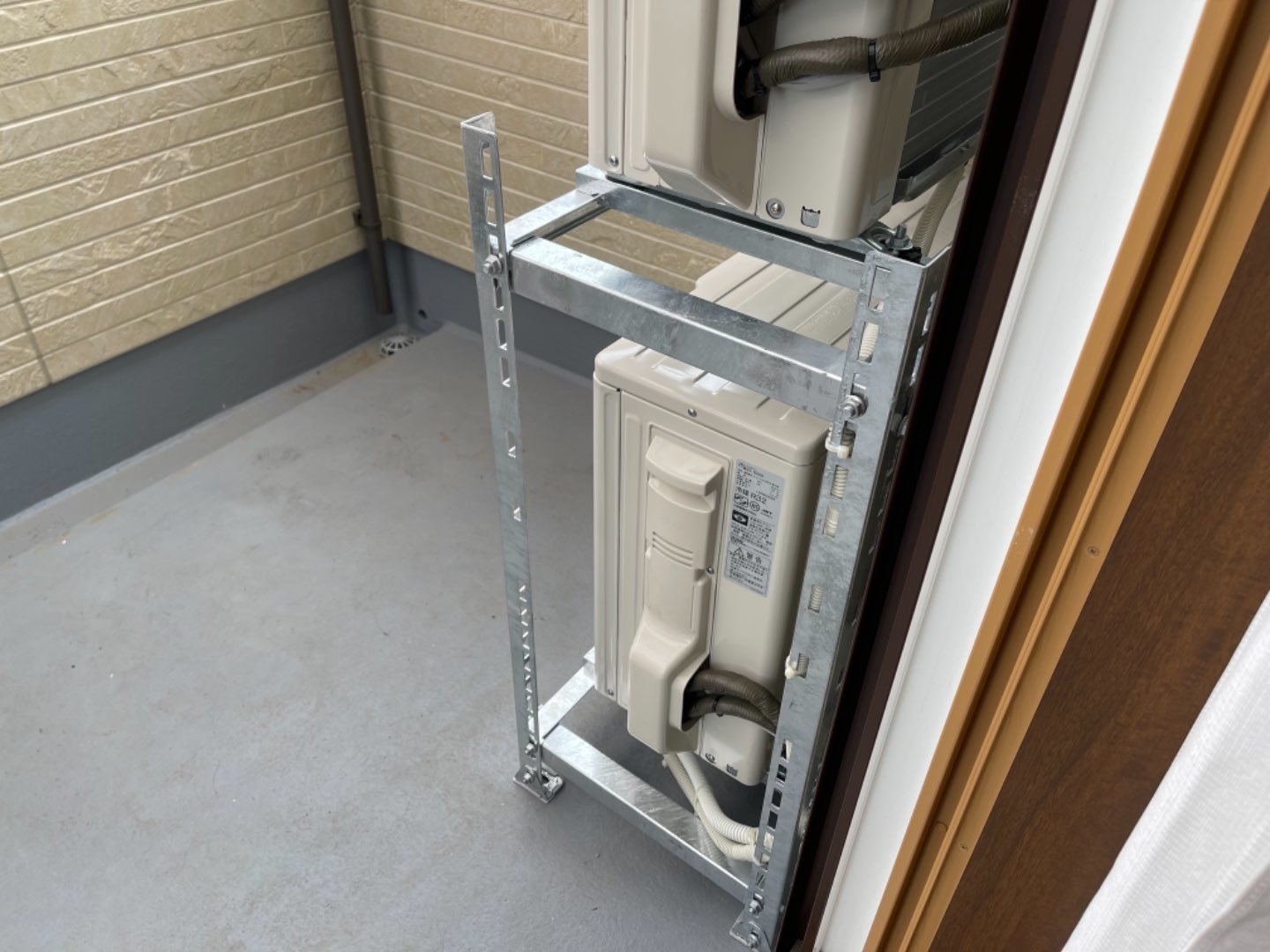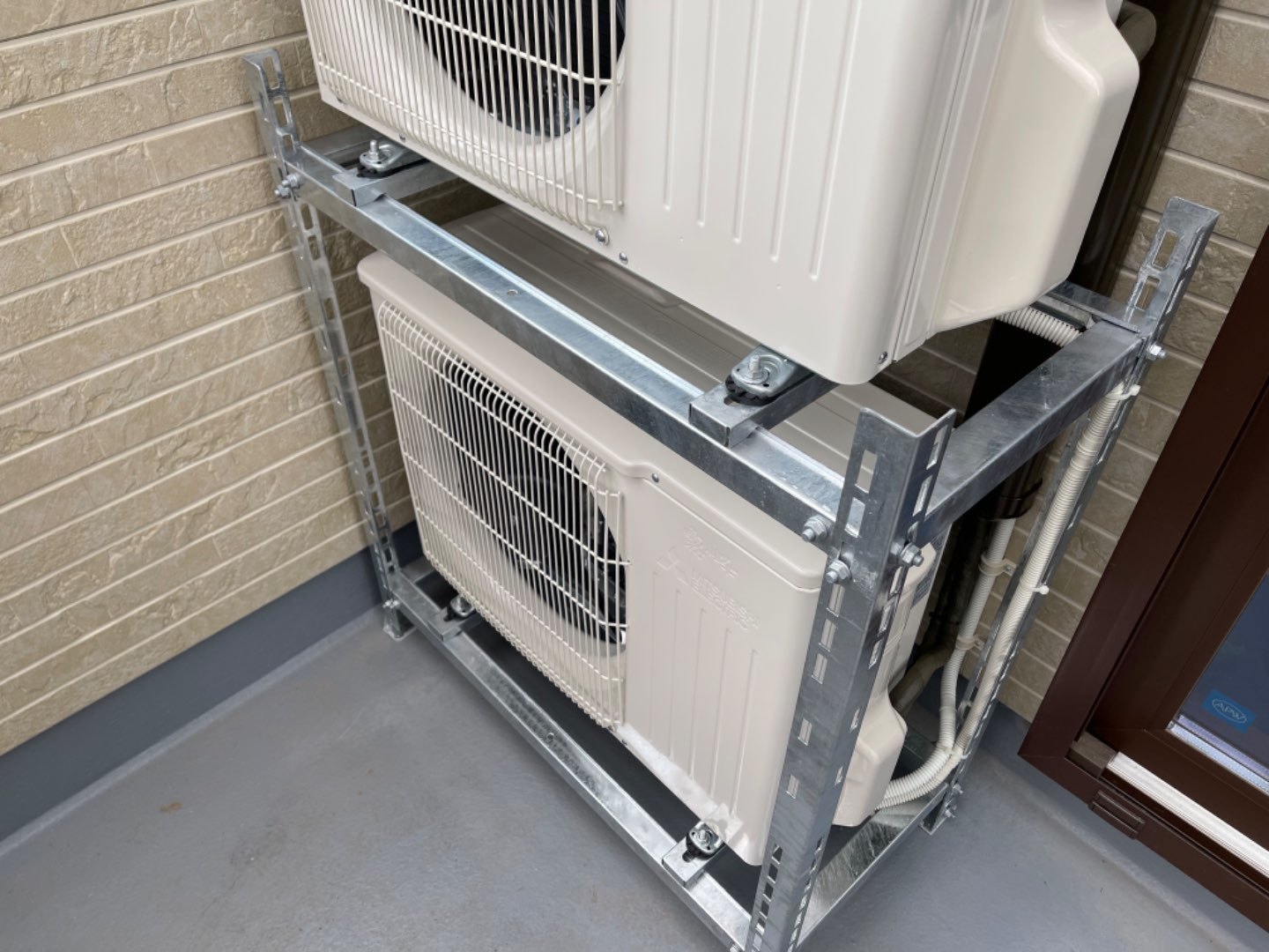 4.新規外部配管カバー取付工事。ブラウン色仕様・2系統を1系統の配管カバーへまとめて収納。