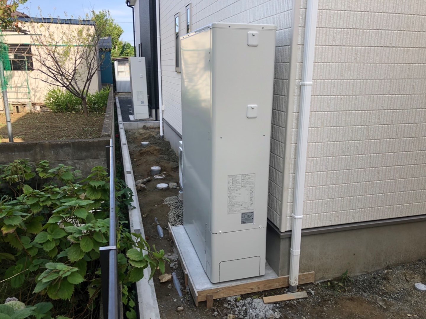 2.新築戸建て建築に伴う新規エコキュート取付工事。
