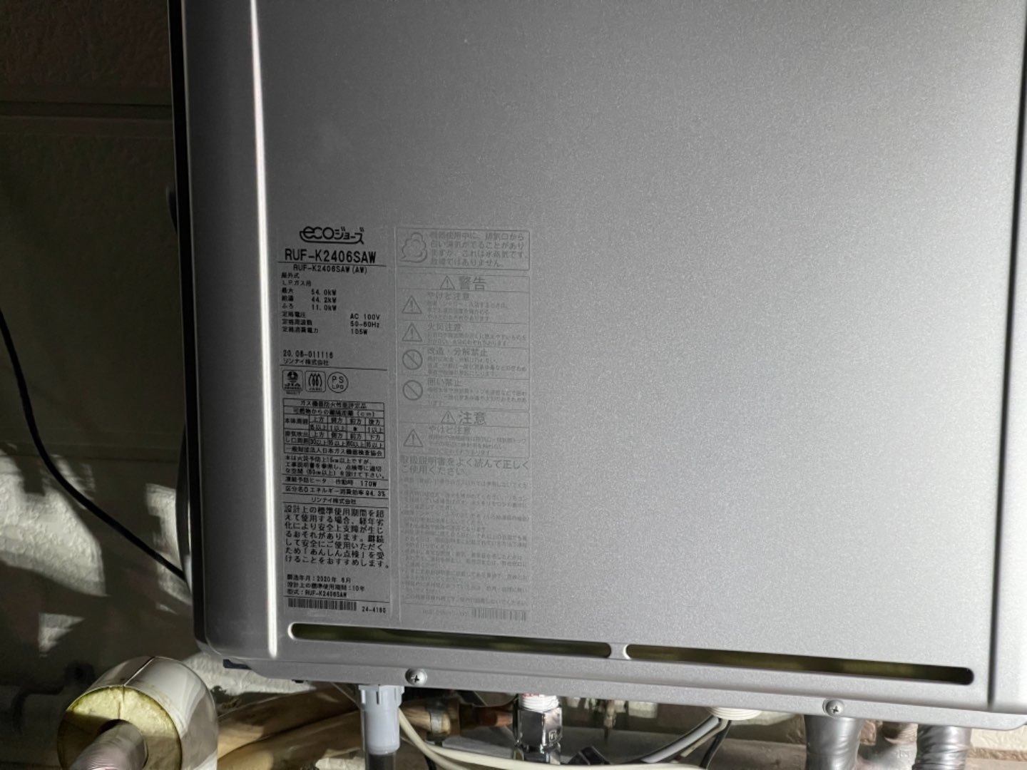 宮城県石巻市 一般戸建てお客様 リンナイ エコジョーズ 壁掛け型ガスふろ給湯器取付工事