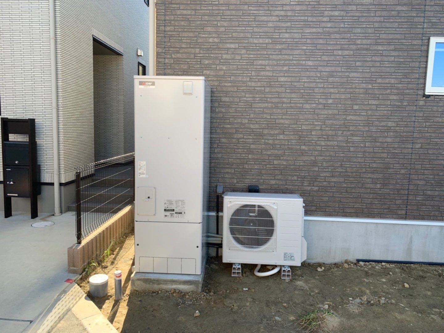 福島県須賀川市 一般戸建て新築現場 三菱電機 エコキュート新規取付工事