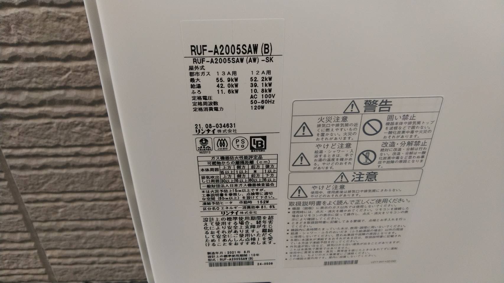 4.新規機器情報 リンナイ 壁掛け型ガスふろ給湯器