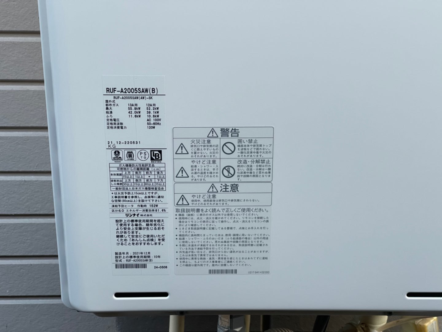 3.新規機器情報 リンナイ RUF-A2405SAW 13A 。