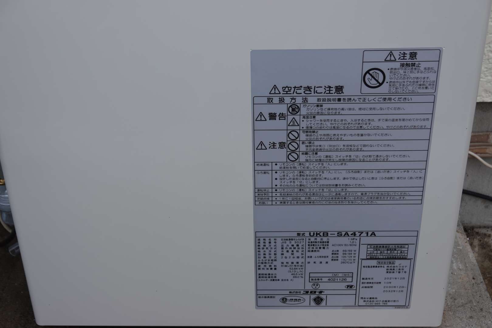 宮城県仙台市泉区 一般戸建てお客様 コロナ製石油給湯器交換工事