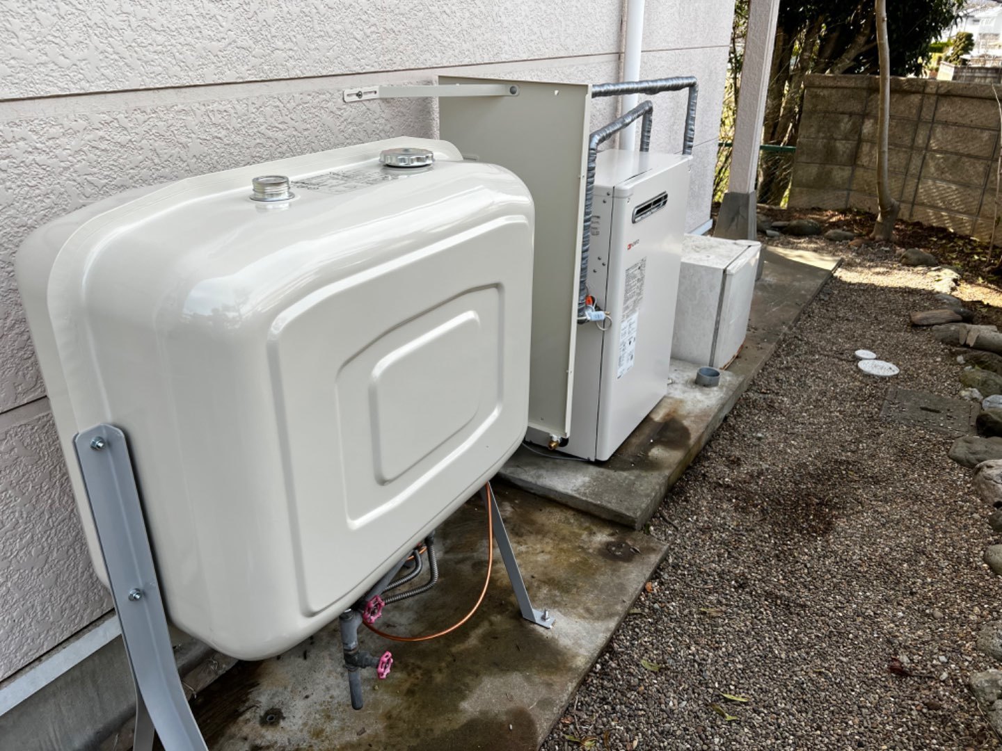 1.既存石油給湯器、オイルタンク劣化の為工事。