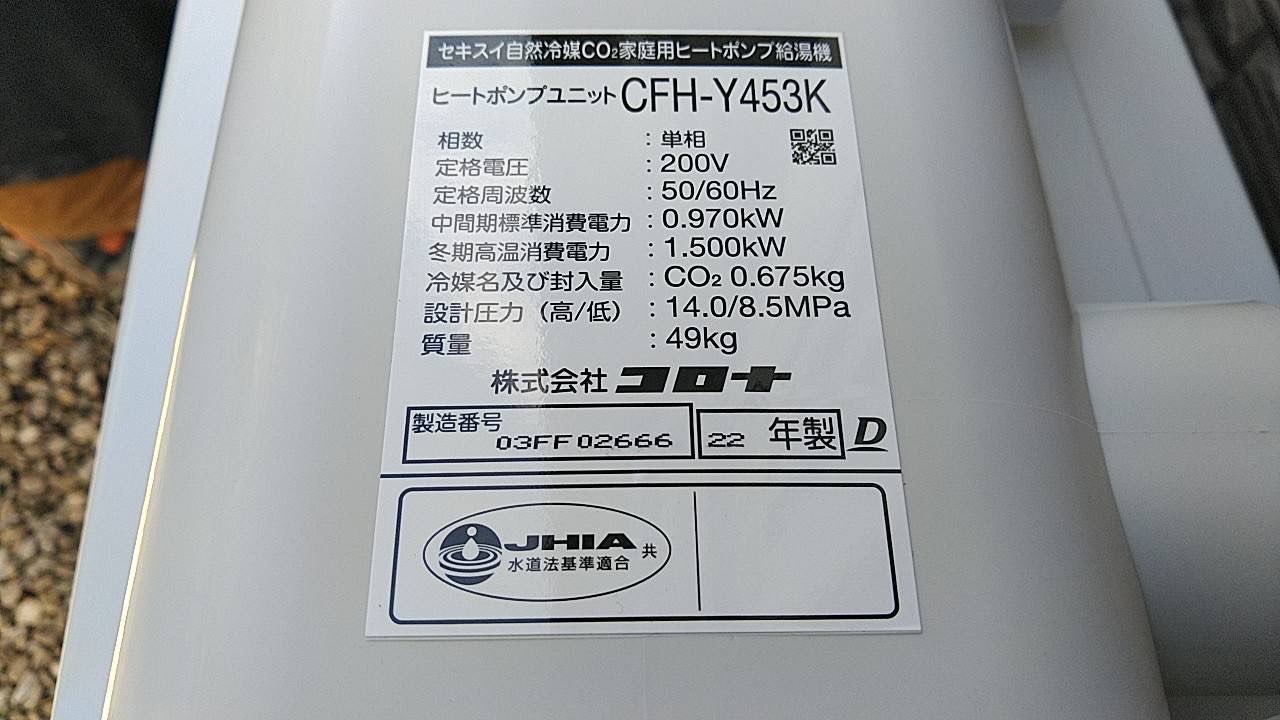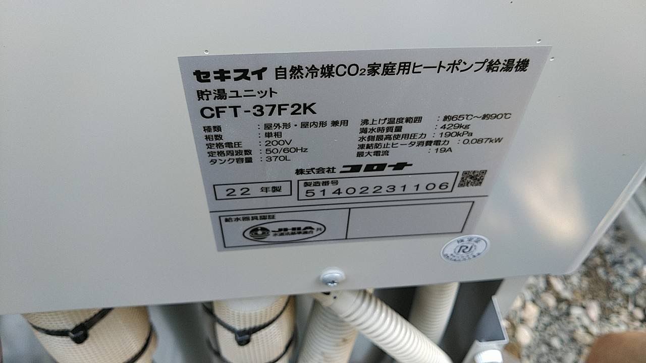 1.既存コロナエコキュート故障の為交換工事。