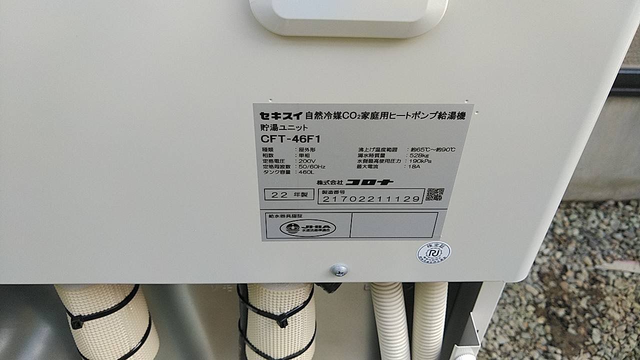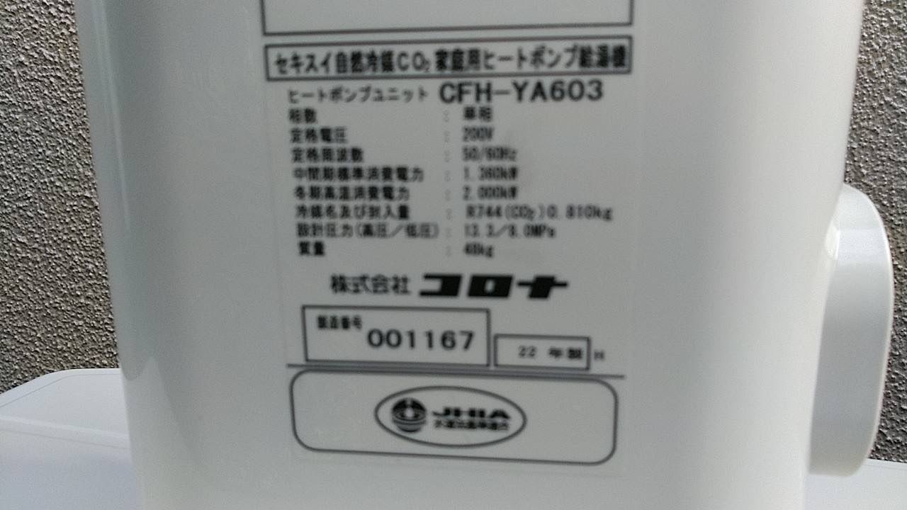 1.既存コロナエコキュート故障の為交換工事。
