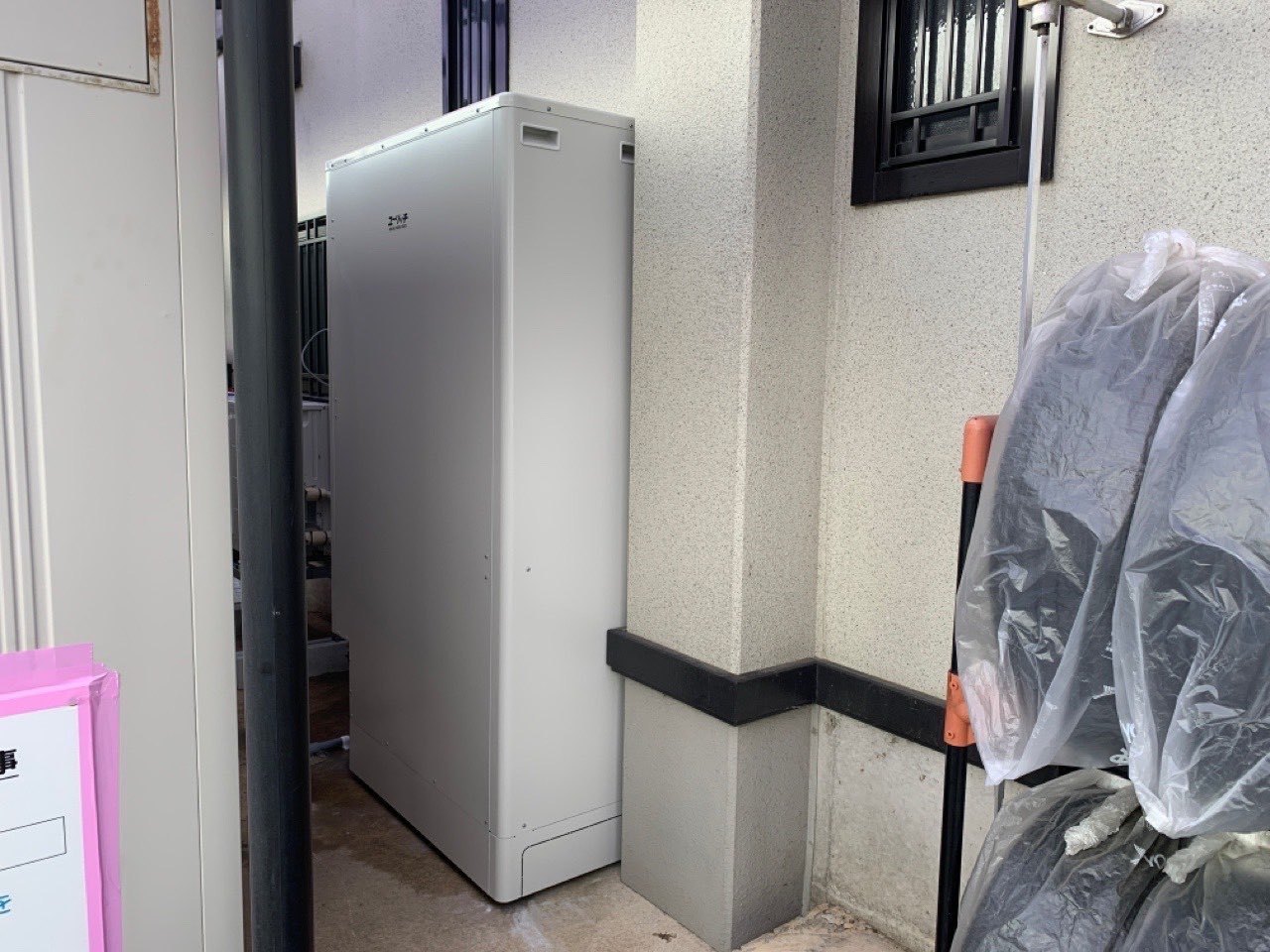 1.一般戸建て新築工事に伴うコロナエコキュート新規取付工事。