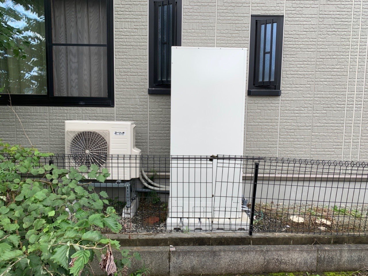 1.一般戸建て新築工事に伴うコロナエコキュート新規取付工事。