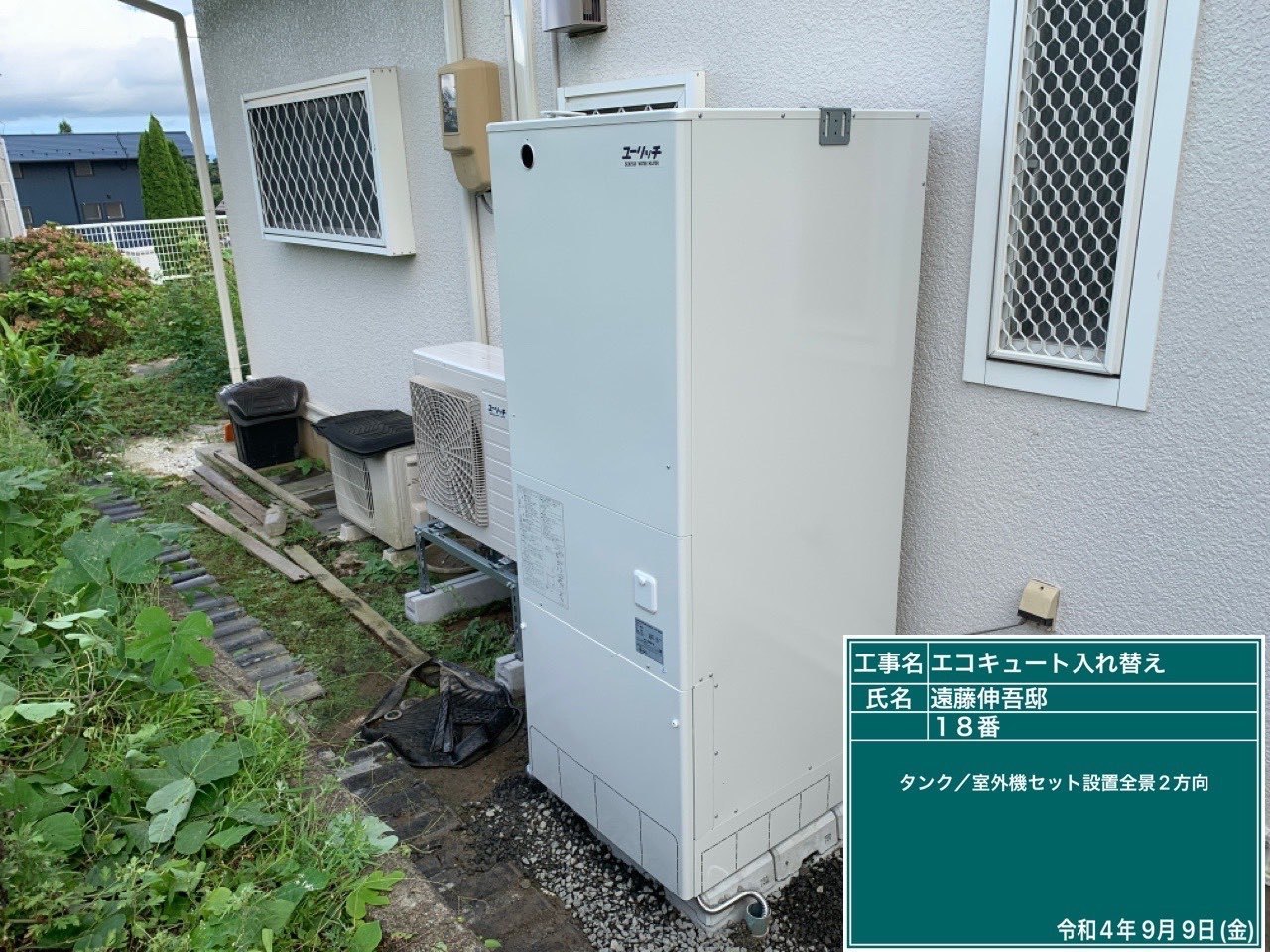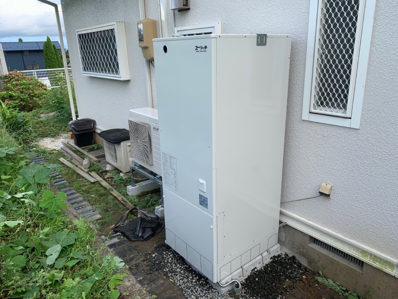 1.一般戸建て新築工事に伴うコロナエコキュート新規取付工事。