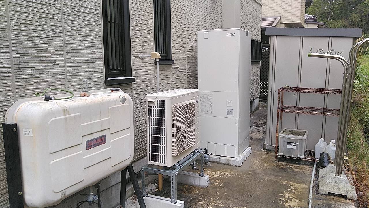 1.一般戸建て新築工事に伴うコロナエコキュート新規取付工事。