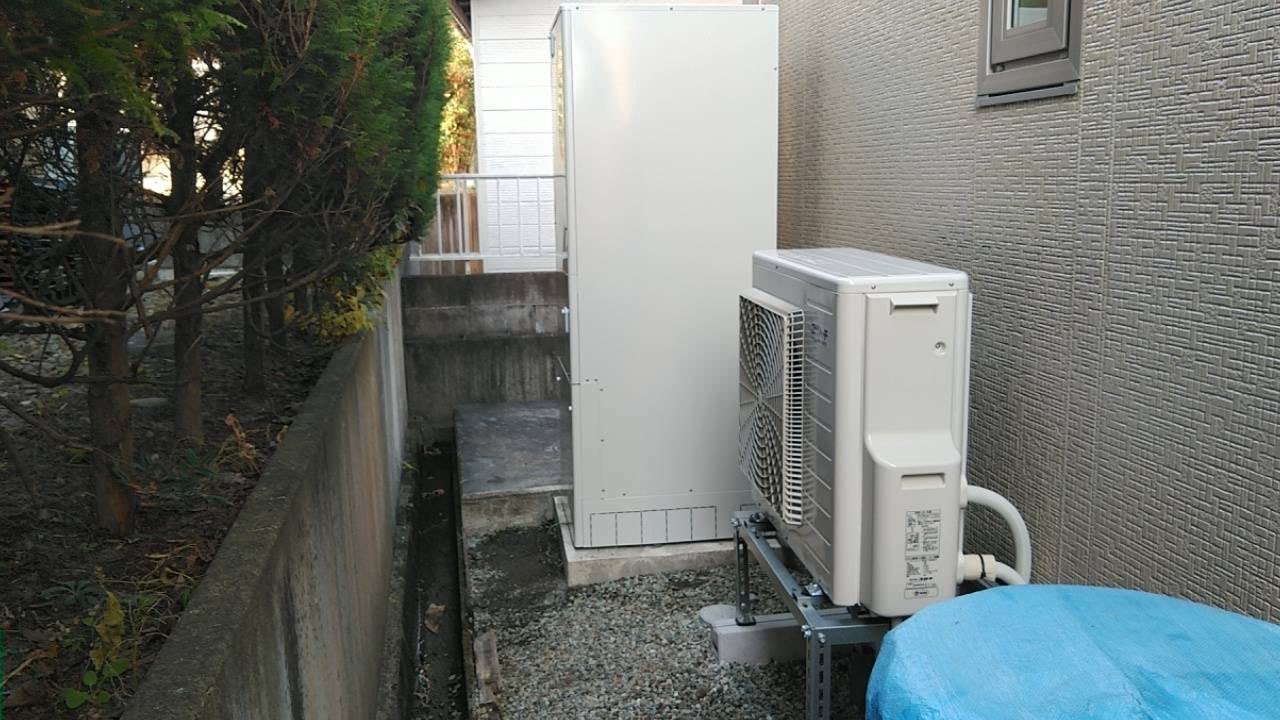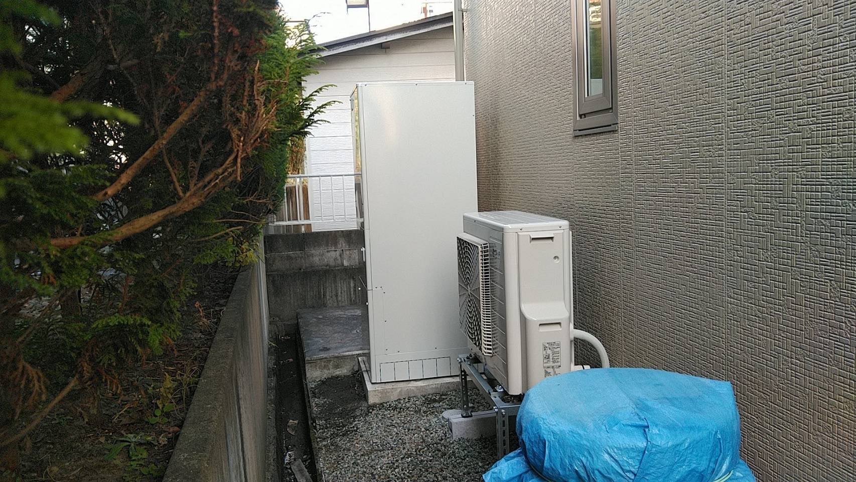 1.一般戸建て新築工事に伴うコロナエコキュート新規取付工事。
