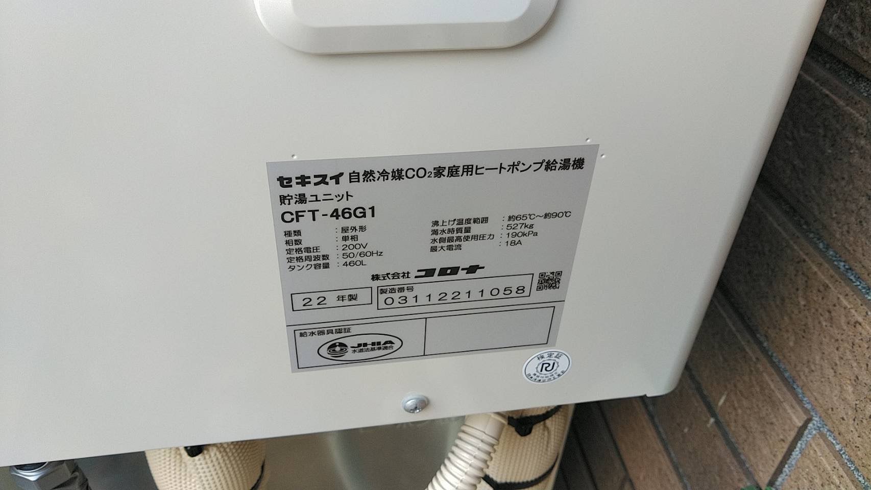 宮城県仙台市泉区 一般戸建お客様 コロナ製エコキュート取付工事