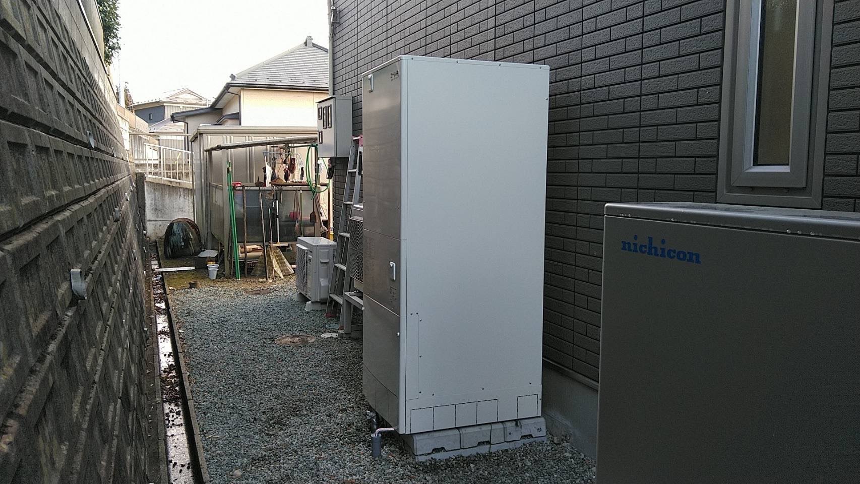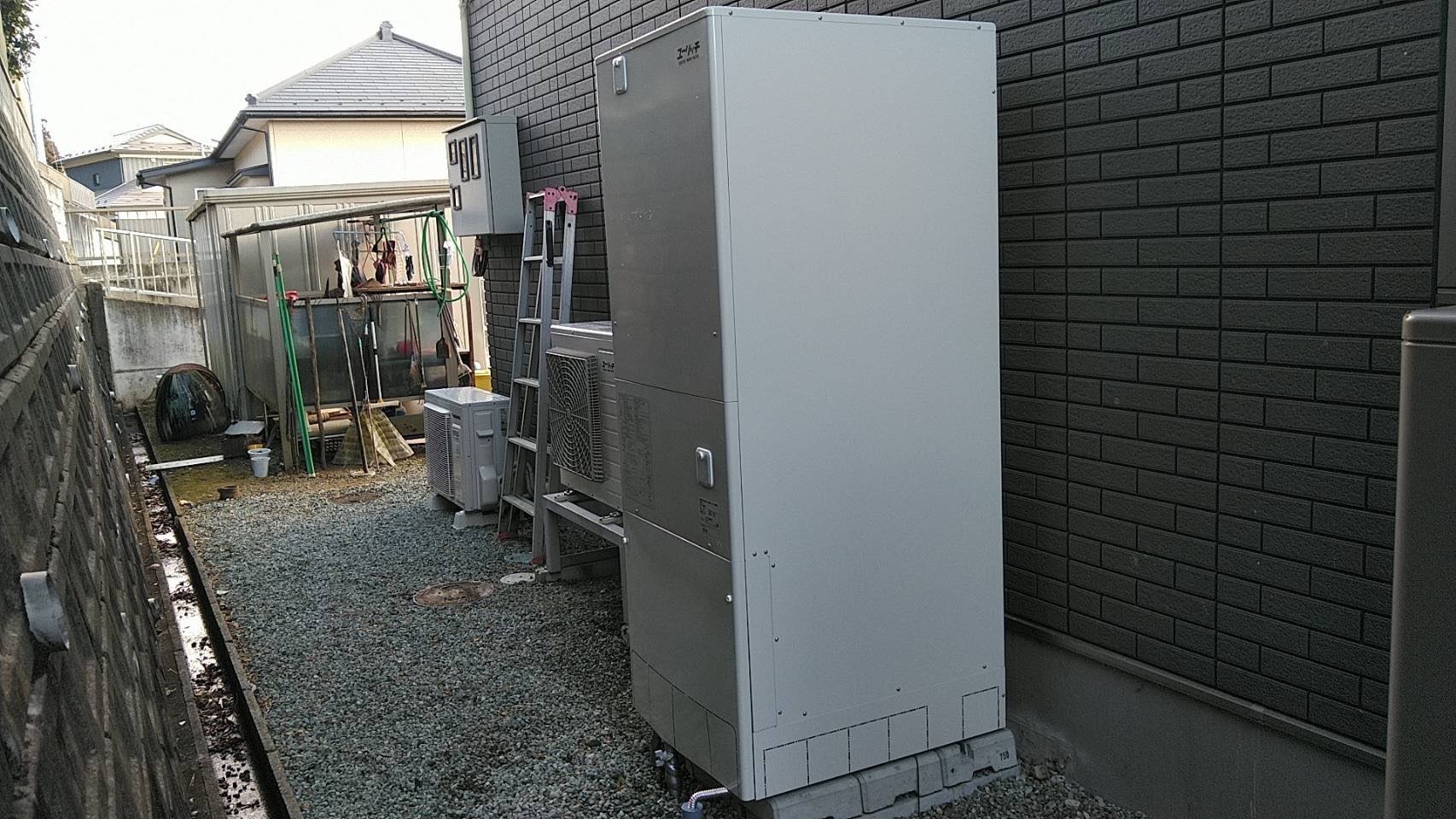 1.一般戸建て新築工事に伴うコロナエコキュート新規取付工事。
